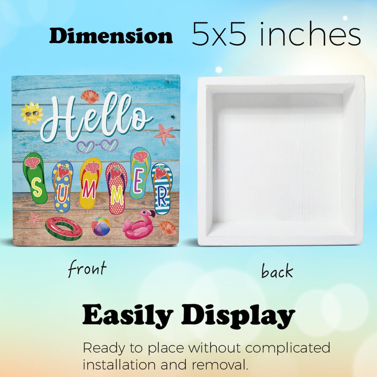 Summer Decor Hello Summer Decorations Flip Flop Wooden Sign Rustic Home Decor 5 x 5 Inches