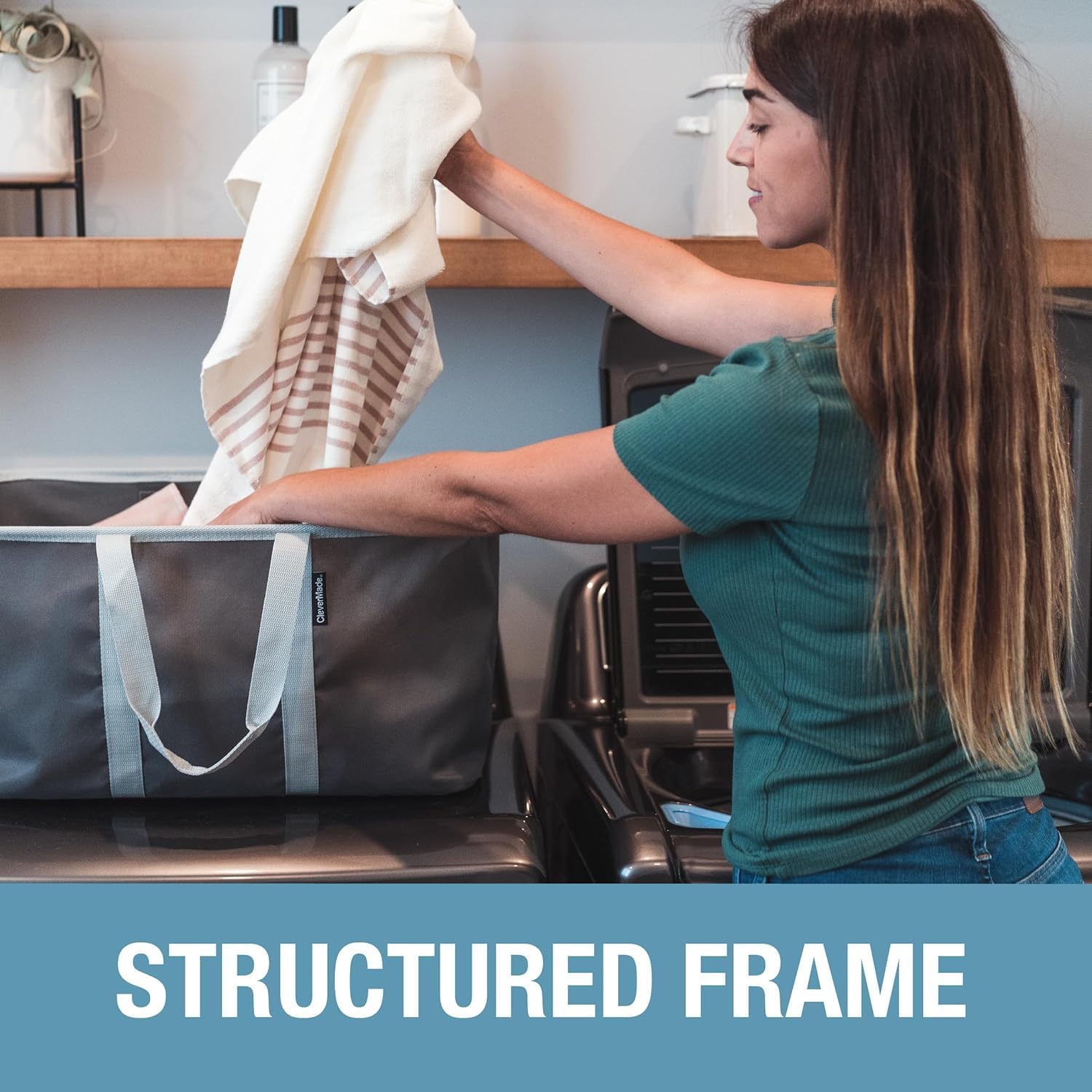 CleverMade Collapsible Laundry Tote - Midnight Black Shadow Gray 2-Pack 50L - Foldable Storage Organization Container for Clothes Laundry Room Storage