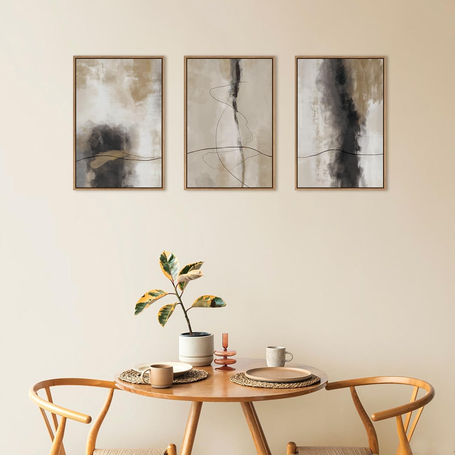 HPINUB Large Modern Abstract Framed Canvas Wall Art Set,Geometric Line Black White and Beige Textured Wall decor Neutral Gray Minimalist Art Print for Living Room,Bedroom,Dining Room,Office -16"x24"x3