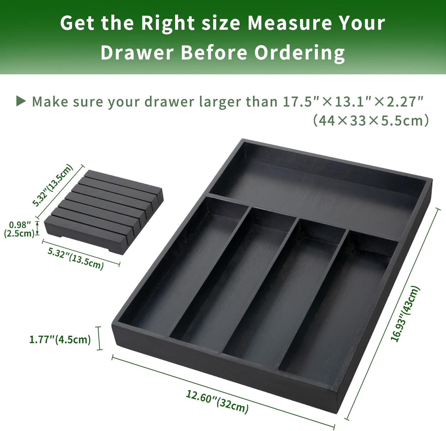 - Measure Before Ordering: Make sure your drawer size is greater than 17.5"W x 13.1"D x 2.27"H
