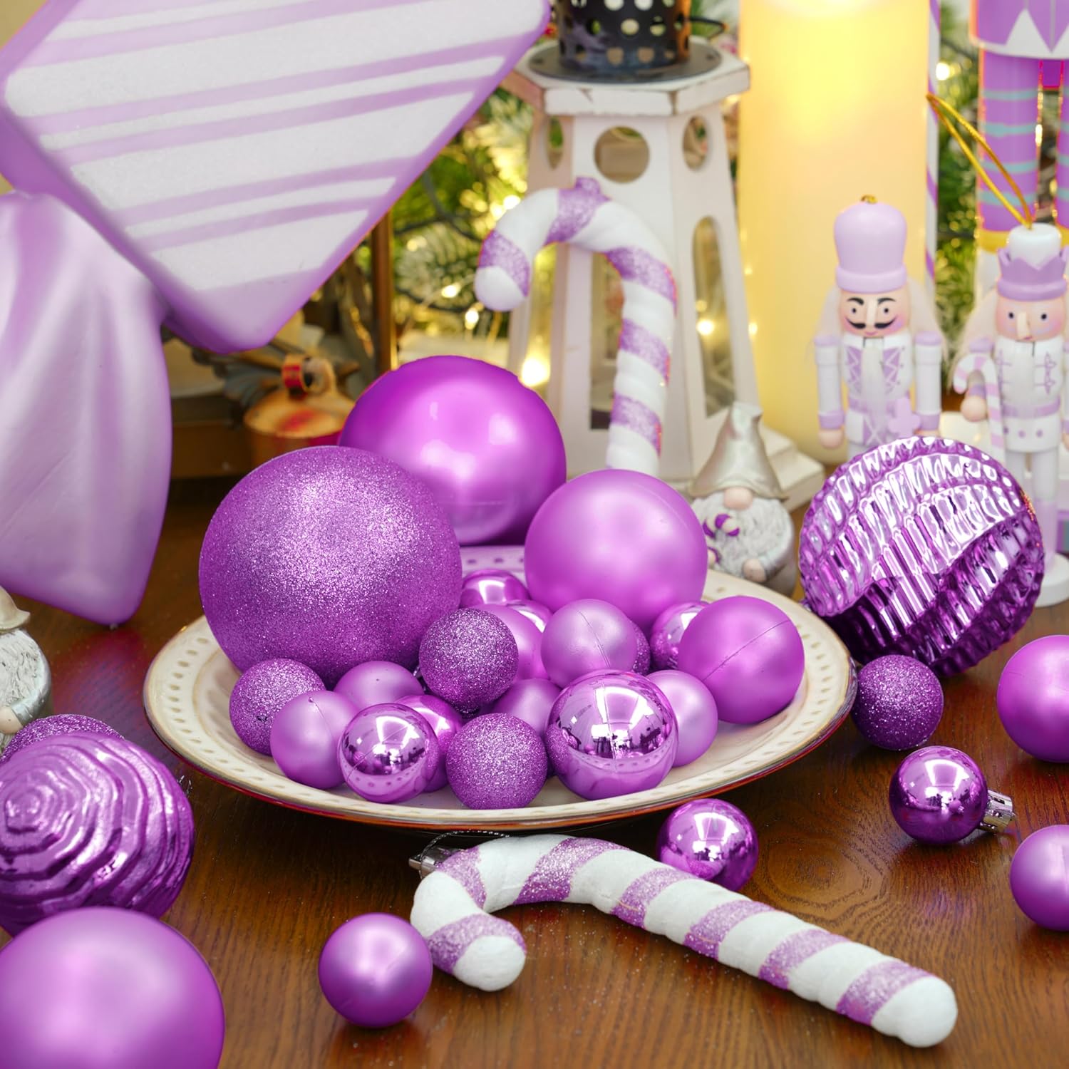 XmasExp 24ct Mini Christmas Ball Ornaments Shatterproof Christmas Ornaments Set Decorations for Xmas Tree Balls 30mm/1.18" (Light Purple)