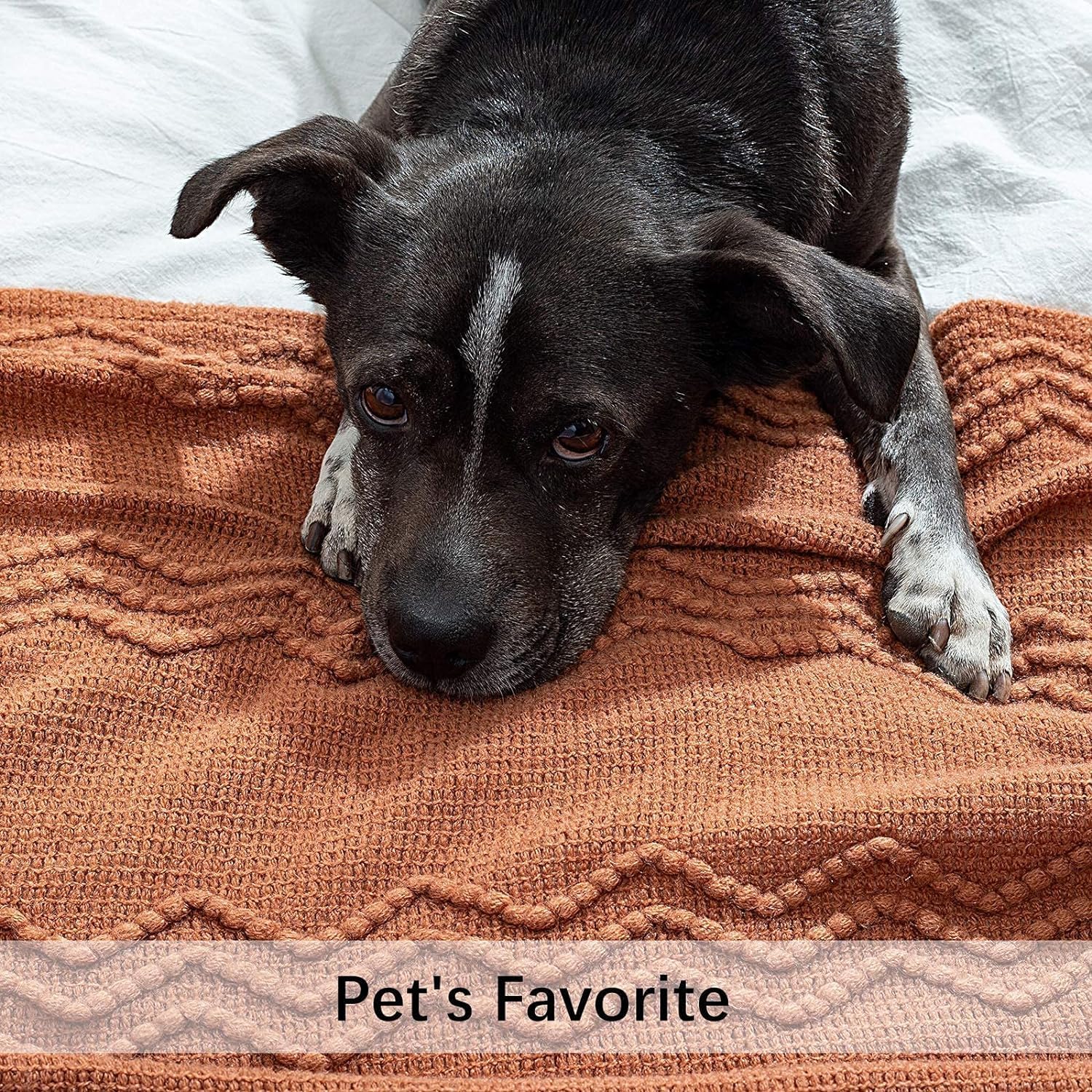 MIULEE Fall Orange Knitted Throw Blanket for Couch Boho Terracotta Rust Textured Cozy Woven Blanket with Tassels for Sofa Chair Bed Living Room Acrylic Wave Pattern 60"x80"