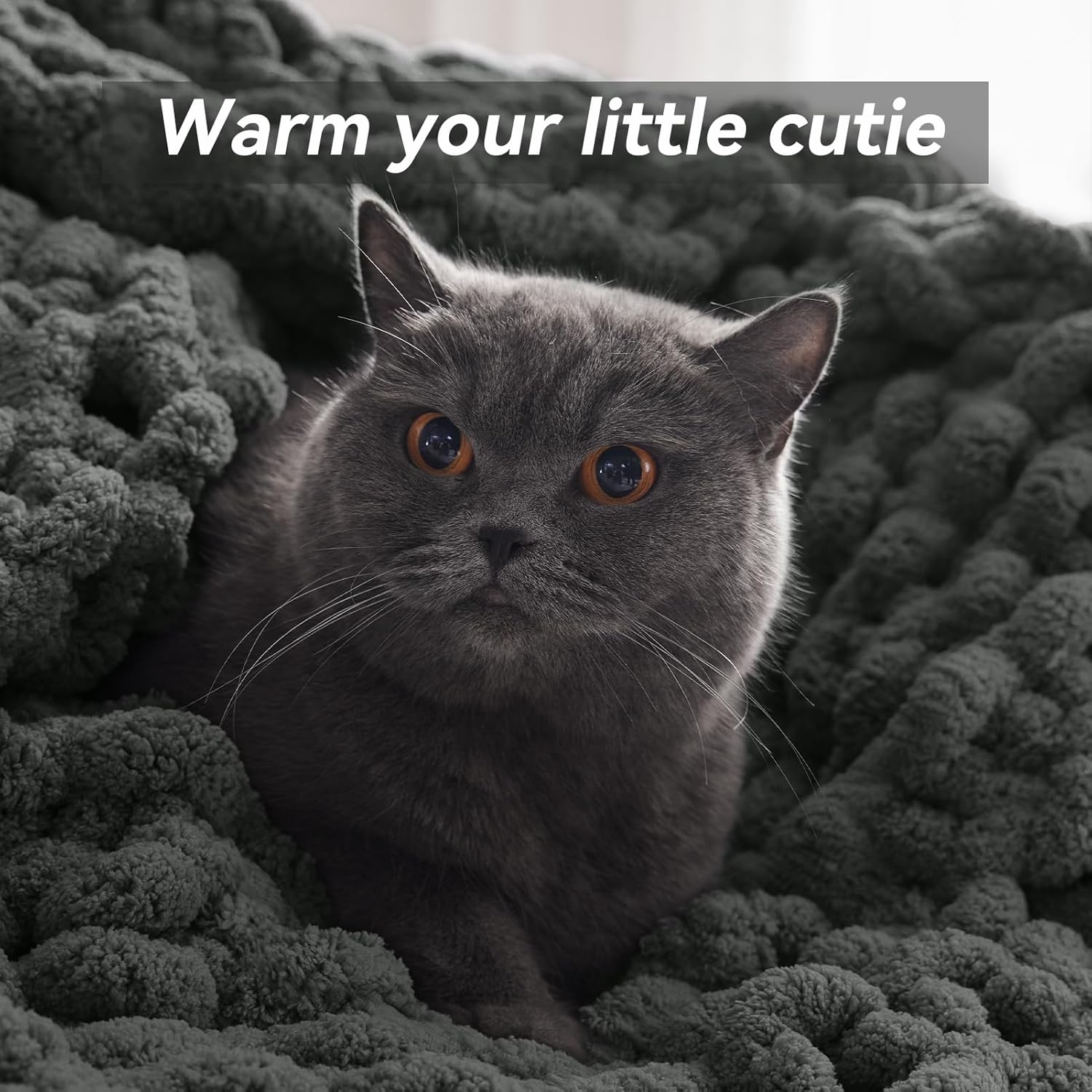 Chunky Knit Throw Blanket, 50''*60'' Knitted Throw Chenille Yarn for Bed Couch, Handmade Dark Grey Crochet Big Thick Blanket, Machine Washable Cute Comfy Blanket for Home Decor