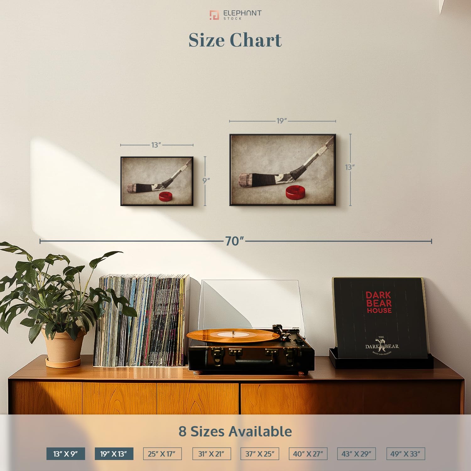 Elephant Stock Vintage Ice Hockey Wall Art - Horizontal Framed Canvas - 1-Piece Hallway Wall Decor - Photography Sports Canvas Print - Brown and Beige Decor for Wall - 13" X 9"