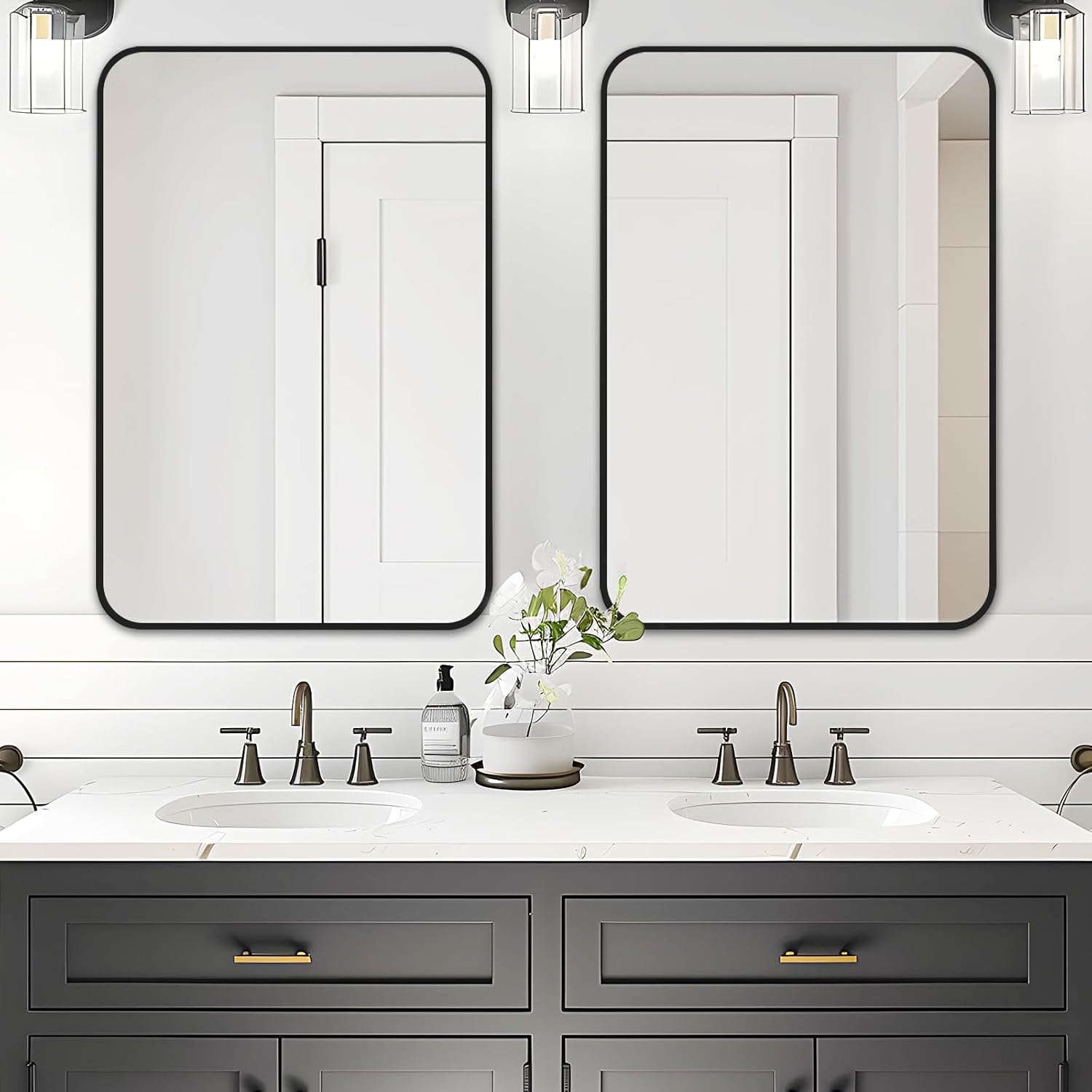 Fabuday Big Black Bathroom Mirror for Over Sink Wall - 26x38 Rounded Rectangle Mirror with Matte Metal Frame, Large Rectangular Vanity Mirrors for Bedroom, Entryway, Horizontally/Vertically