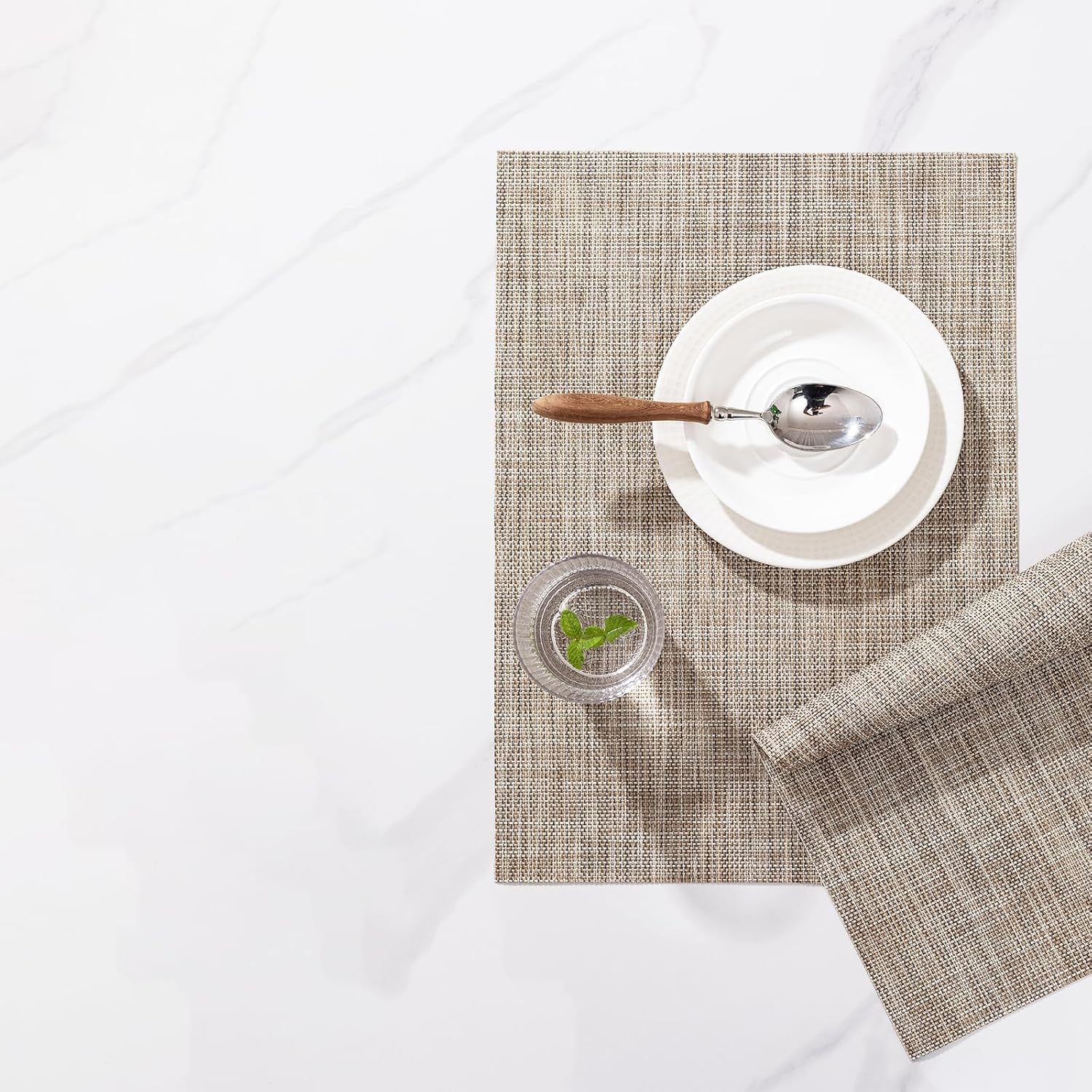 LEXMORE Placemats Set of 8 Vinyl/Plastic Woven Place Mats for Kitchen Table Indoor/Outdoor Washable Placemat Wipeable Dining Table Mats(A-Caramel)
