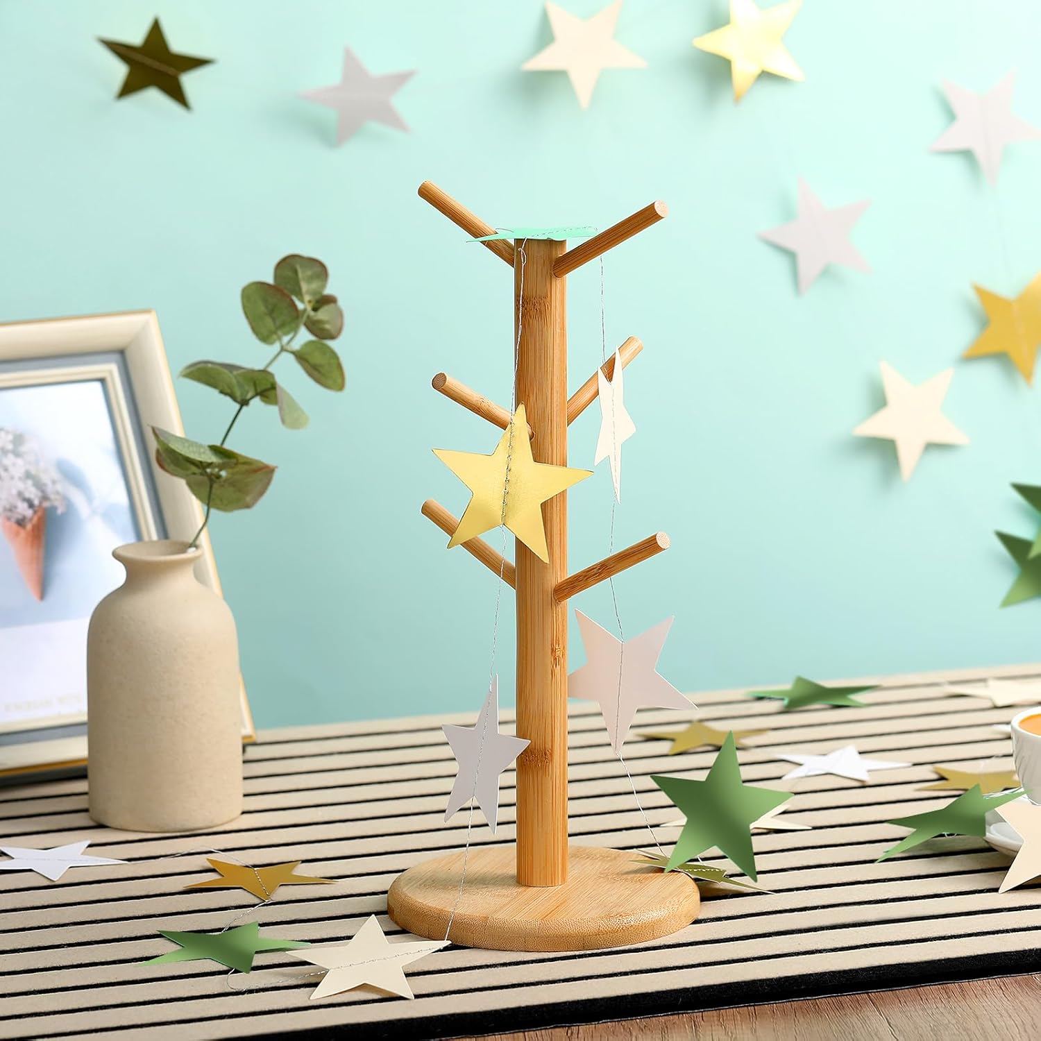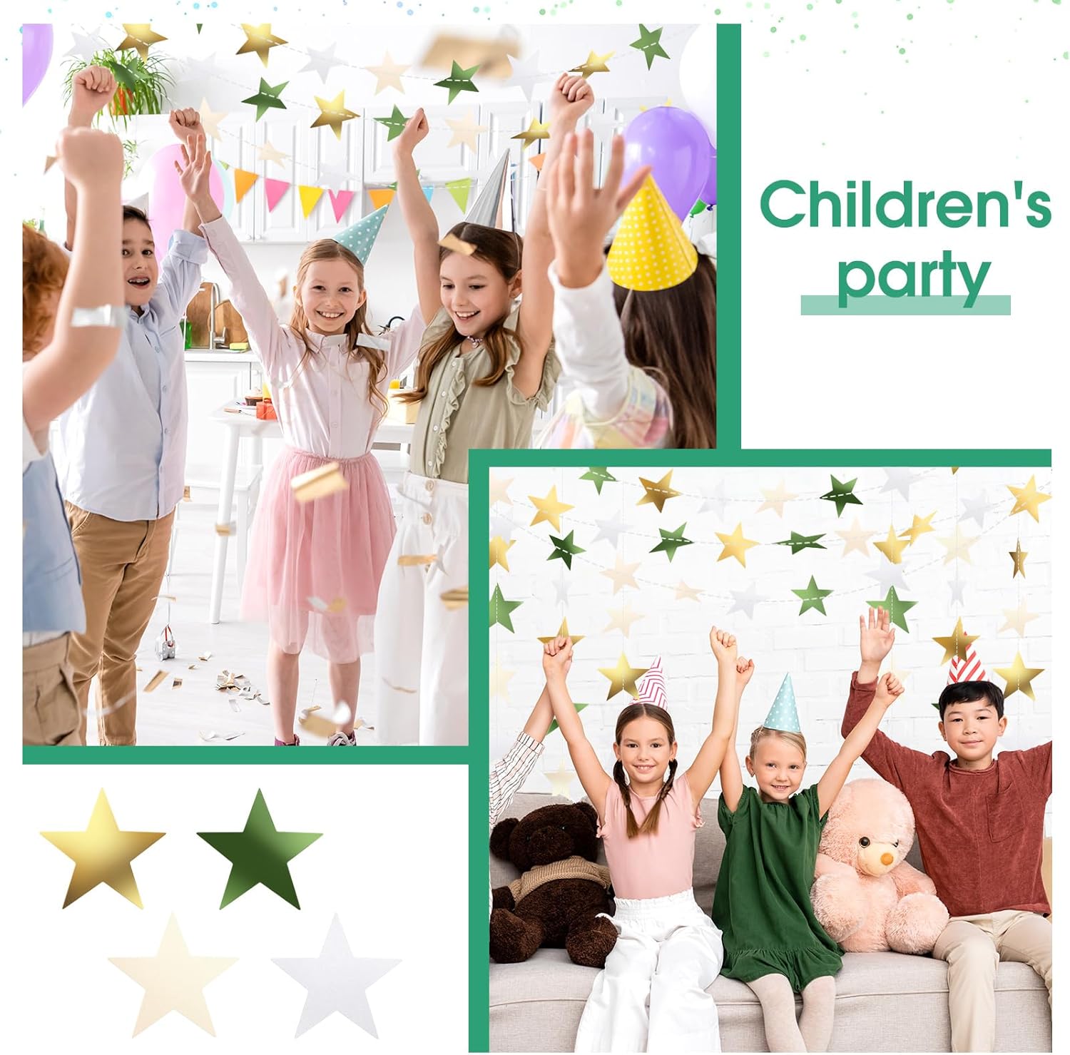 Patelai Glitter Star Garland Banner Decor 130 Feet Star Hanging Bunting Banner Twinkle Backdrop for Homecoming Classroom Wedding Birthday Halloween Christmas Party Supplies(Sage Green, Gold, White)