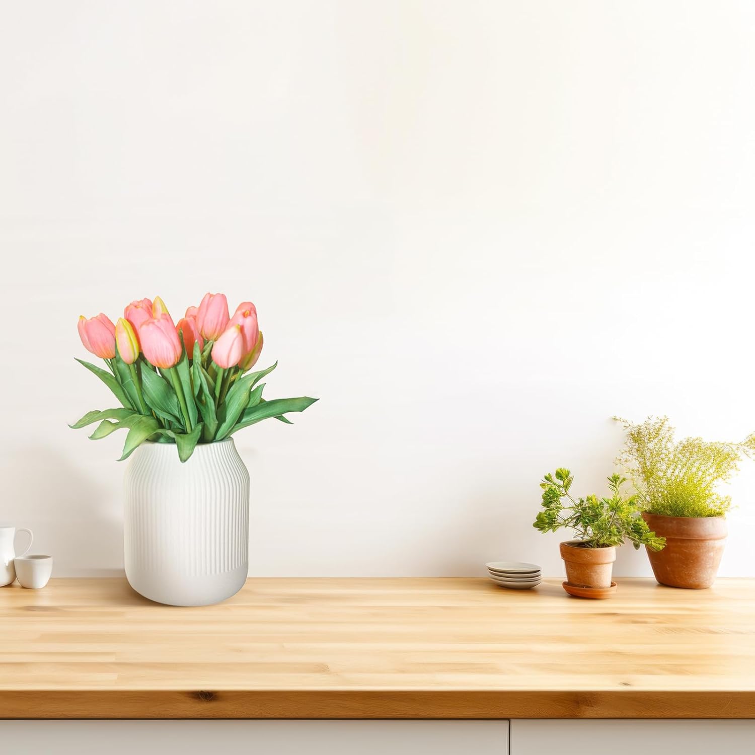 • [Low Maintenance]: Compared to real flowers,fake tulips require minimal upkeep. faux tulips won't wilt, offering a long-lasting decorative option. There's no need for watering, pruning, or sunlight, making them perfect for busy individuals or environments where real plants struggle to thrive.