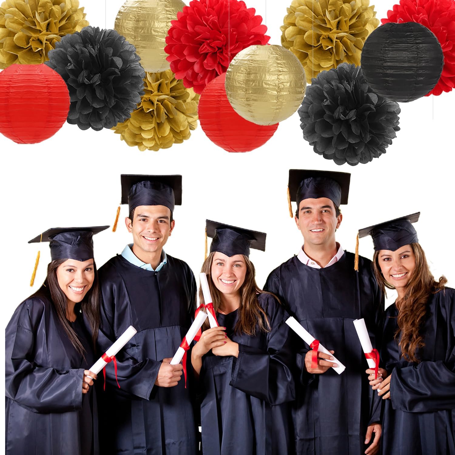 Red-Black Gold Party-Decorations Paper Flowers Lanterns - 15PCS Casino Theme Halloween Tissue Pom Poms Streamers,Game Night Women Men Birthday Wedding Bachelorette Hanging Supplies Decor Hugfond