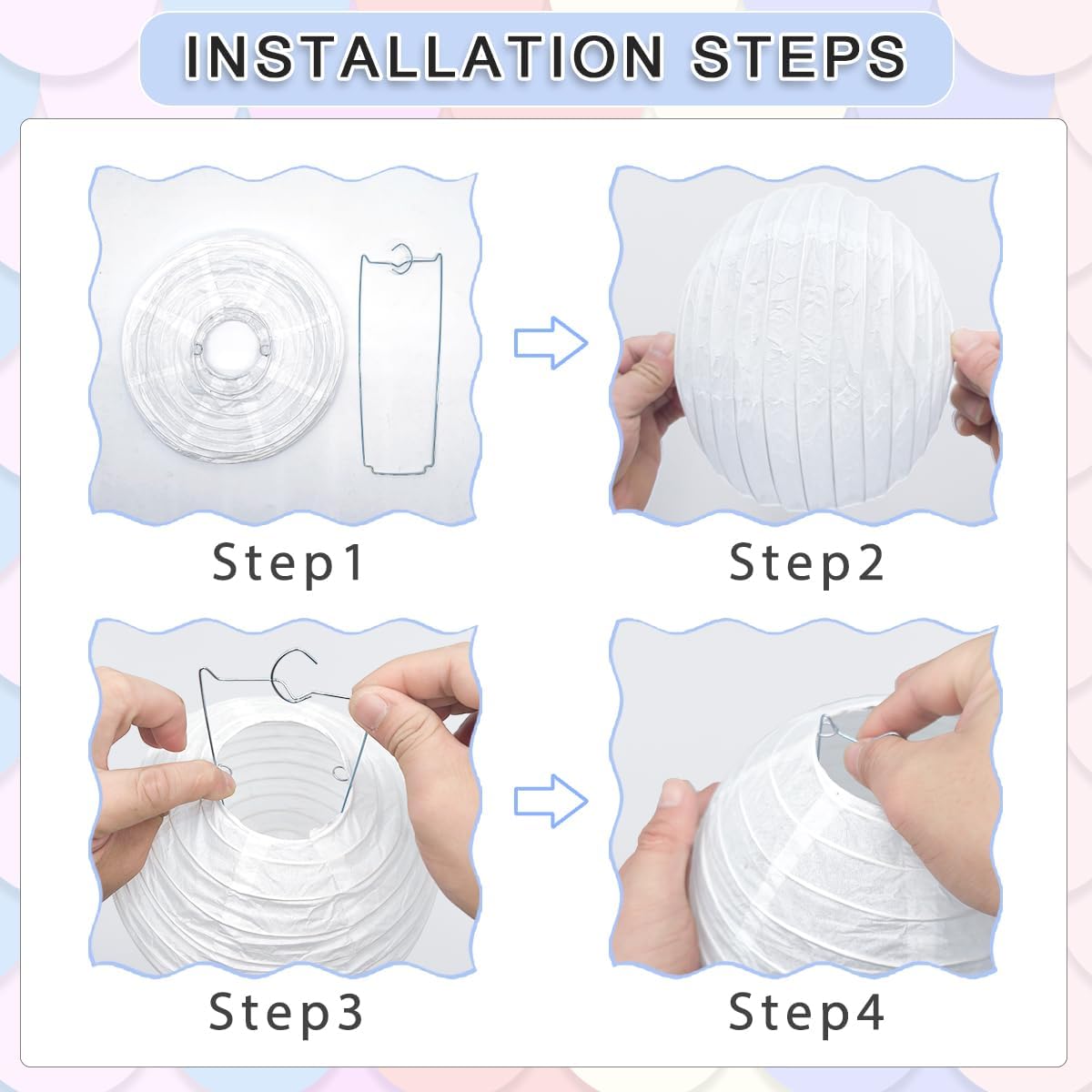 - ăEasy to assembleă: Our lanterns are easy to unfold, assemble and hang up, and they can be folded flat for storage. All you need to do is to pull the two ends gently to open the lantern and insert the metal frame (included in the pack) into the lantern to keep its shape.