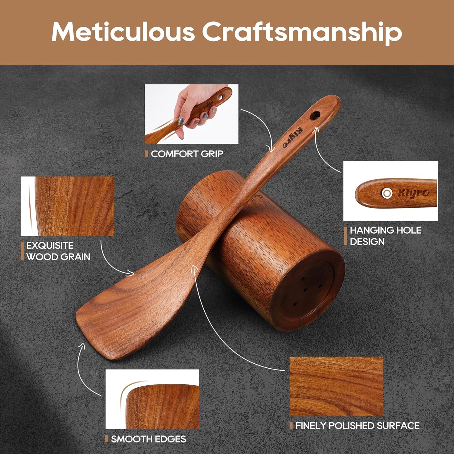 - Ergonomic Design for Comfortable Grip β The spatula set features an ergonomic handle for a comfortable grip. Once you use a KLYRO wooden spoons, youβll be amazed by its thoughtful design. It is lightweight yet sturdy, reducing hand fatigue during prolonged use, making stirring and serving easy and enjoyable, enhancing your cooking experience.
