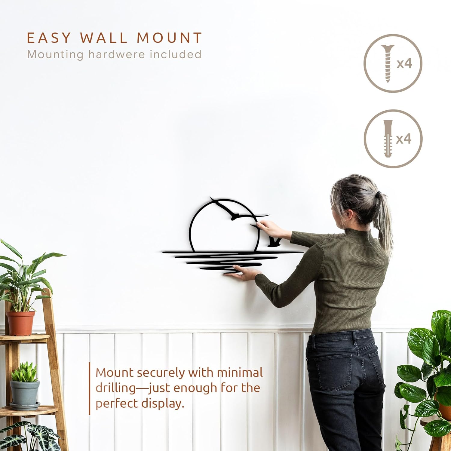 Wita Home Sunset with Seagulls Metal Wall Mounted Art, Handcrafted Metal Home Decor with Static Powder Coating, Eye-Catching Addition to Living Room Decor, Modern Beach Decor for Indoor and Outdoor Spaces, Perfect Housewarming Gift (18 x 9 inches)