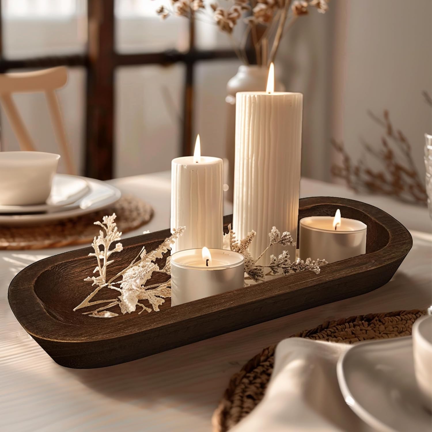 - 【Versatile Utility】Elevate the aesthetic of your living room, kitchen, yard, farmhouse, or any space with these exquisite wooden bowls. They serve a variety of functions, from classic dough bowl usage to small item storage, holding fruits, serving dishes, or even transforming into captivating dough bowl candles. With the adaptable nature, they will seamlessly blend into any setting.