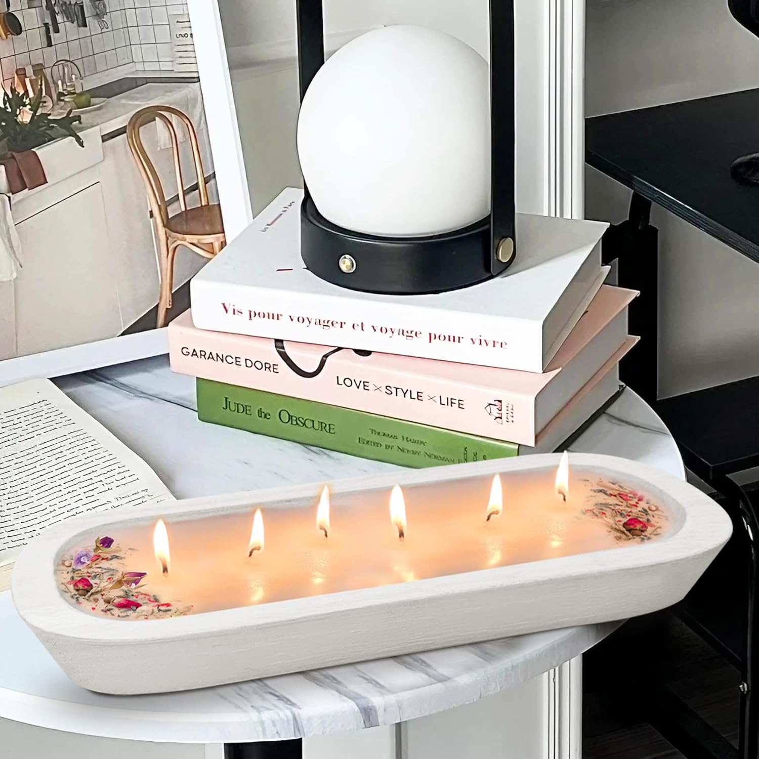 Royxen 8 Pack Dough Bowl for Candle, Wooden Dough Bowls Paulownia, Rustic Bowl Vintage, Bowls for Candle, 14.5 x 5.5 Inch, White