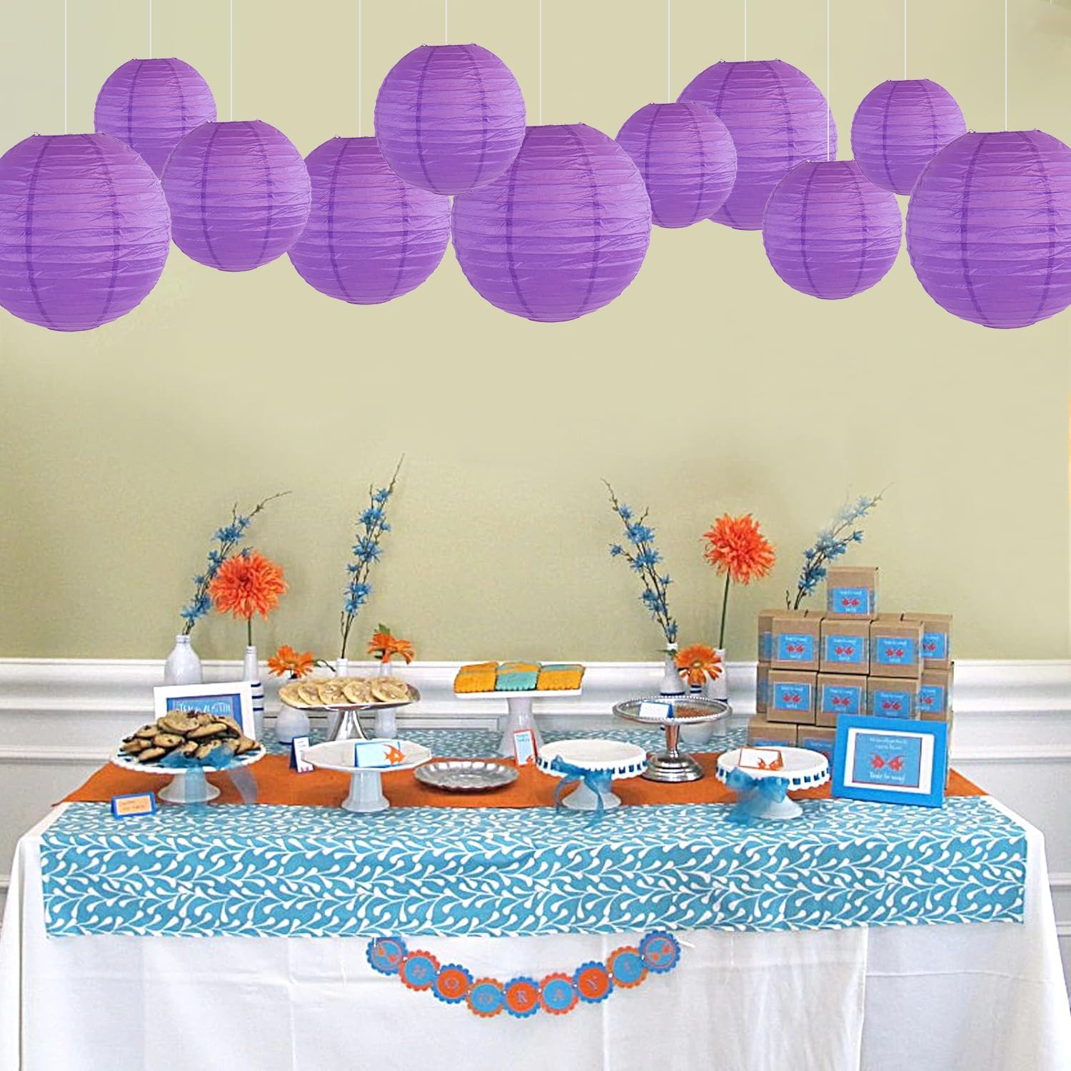 12Pcs Round Paper Lanterns Assorted Sizes (6" 8" 10" 12") for Home Decor, Restaurant, Church, Wedding, Birthday Party Decorations, Hanging Chinese Japanese Paper Lantern Lamps (Deep Purple)