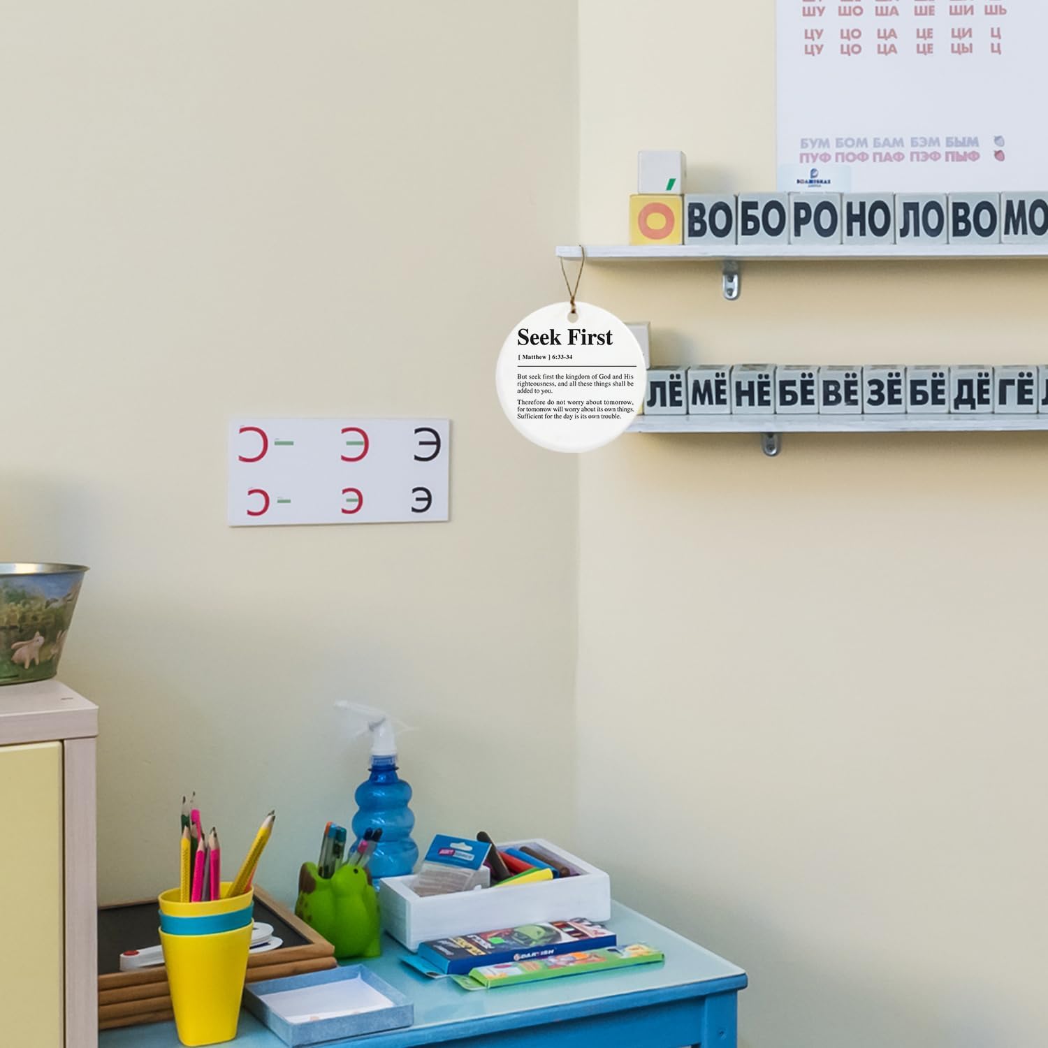 Christian Ornaments, Matthew 6:33-34 Seek First Christian Bible Verses Ceramic Ornament Keepsake Sign Plaque, Christian Religious Ornaments