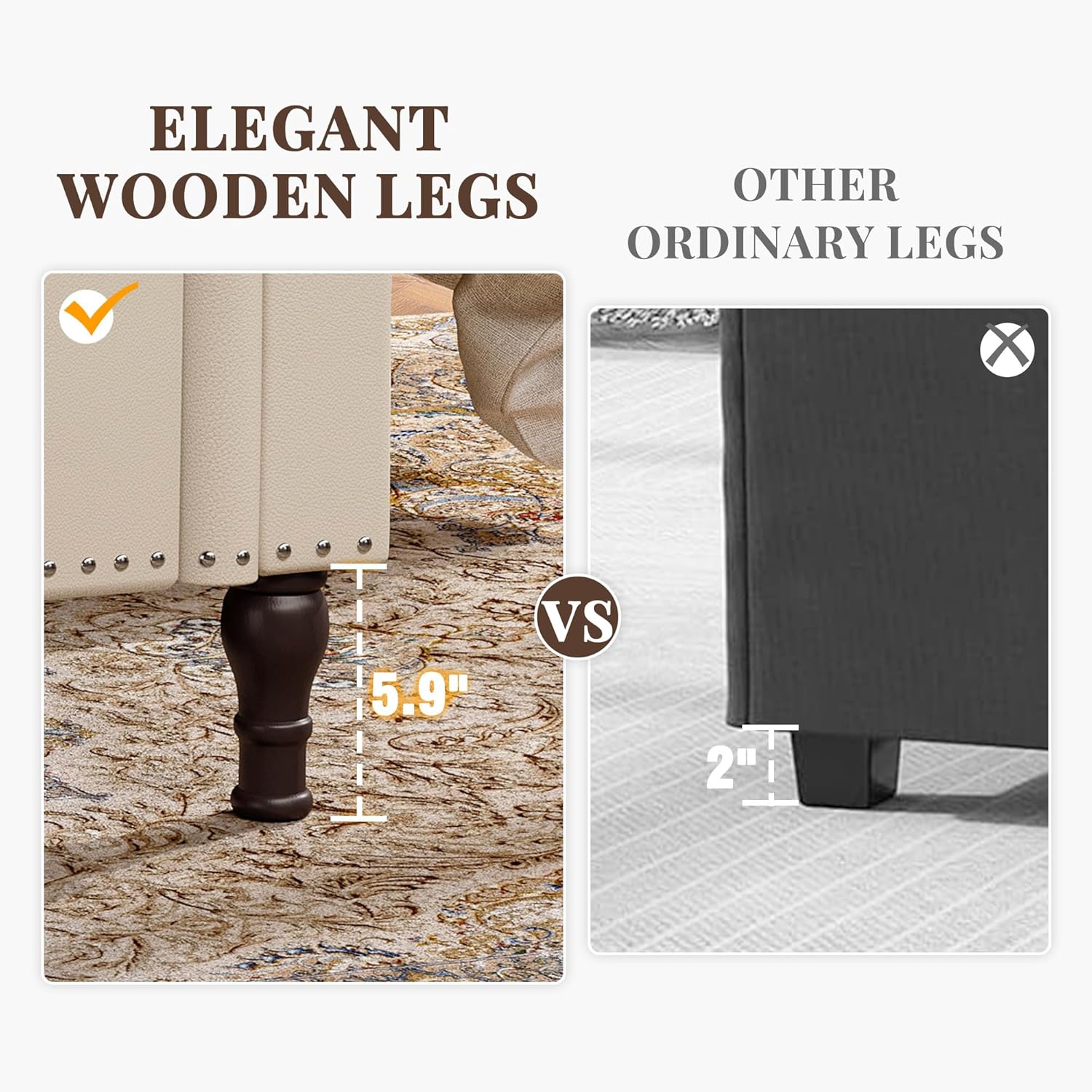 51" Storage Ottoman Bench for Bedroom, Full Queen Storage Bench with Button, Upholstered Bedroom Bench with Rolled Arms for Living Room, Storage Room, Entryway, Beige+Brown Legs