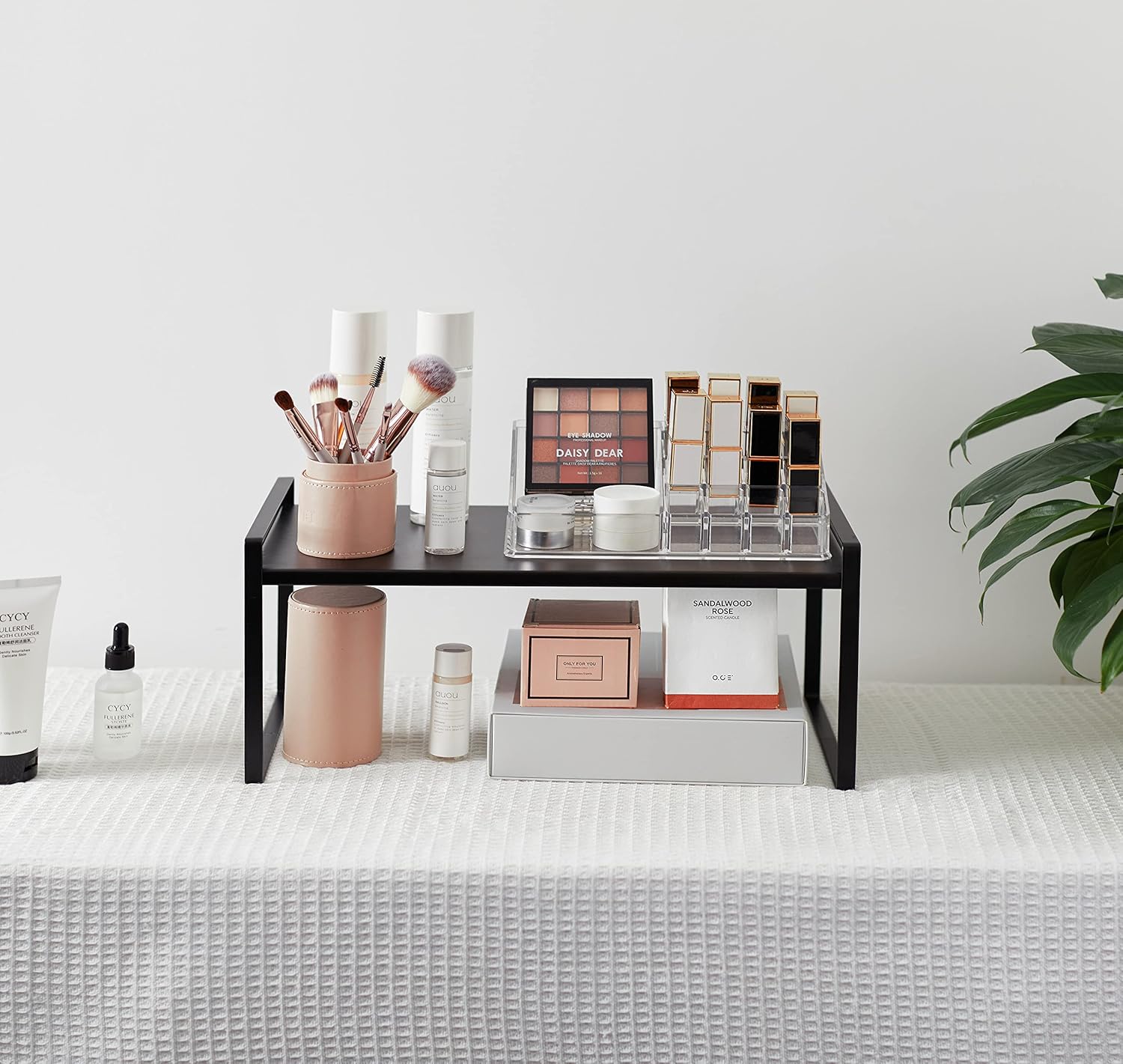 - CHARACTER DESIGN: This cabinet shelf can create plenty of space for your household items such as cups, pots, bottles, bowls, cookware, or canned foods without dominating space in your cabinet. This stylish cabinet shelf fits neatly on the countertop to keep your essentials organized and easily accessible.
