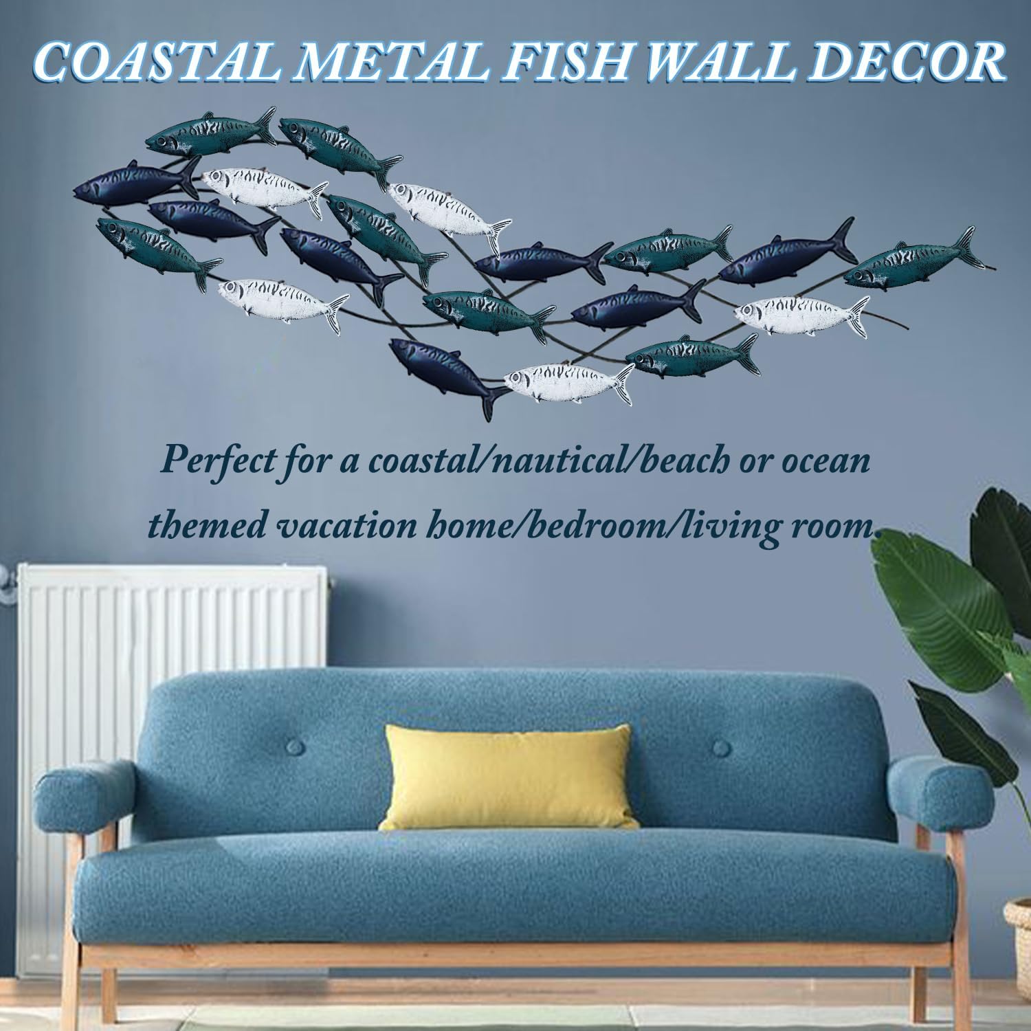 - Nautical Wall Decor : this coastal nautical decor for wall features the shape of fish, vivid and funny, moving upwards as the school of fish moves. 3D metal fish wall art is perfect for any room with coastal, nautical, beach, or boat dรฉcor. School of fish modern metal wall art will make a statement on your wall.