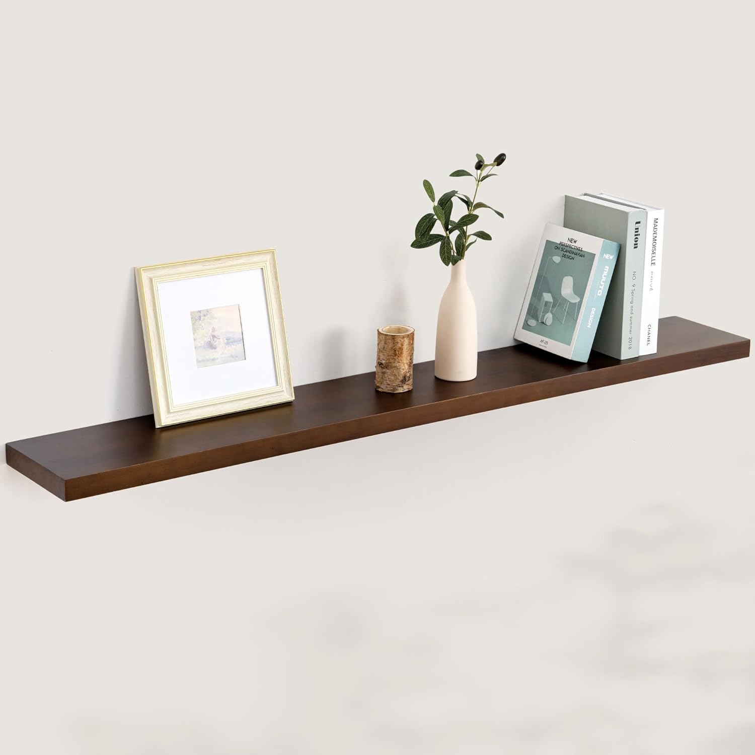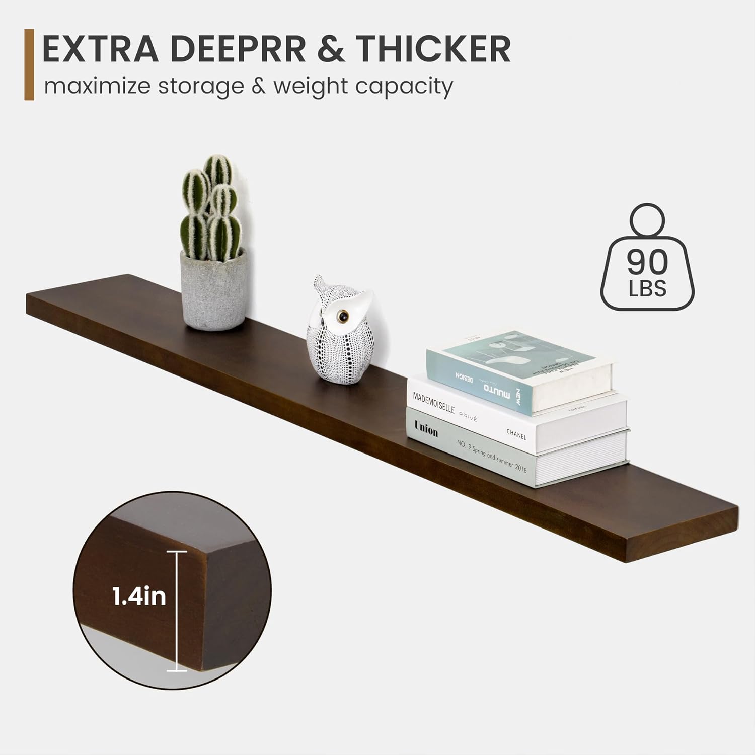 - Extra Deeper & Thicker for Storage - Each board measures 55"W x 8"D x 1.4"H. Extra deeper and thicker design in order to bring maximizes storage space and weight capacity, even hold up to 60 lb. This floating shelf taking up zero square feet, reduces clutter and highlights dรฉcor in compact spaces. It can help make full use of the empty wall, making it much more space-saving and making your room look larger and tidier.