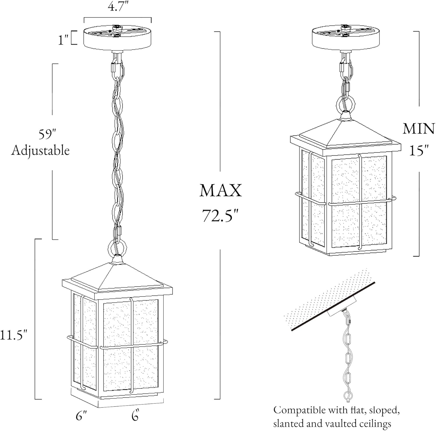- Ideal Size & Suited Space: The gazebo hanging light size is 6β L x 6β W x 11.5β H.; The canopy size is 4.7" D x 1" H, which can cover the standard junction box. Sloped and vaulted ceilings are compatible. Equipped with a 59" adjustable hanging chain, this outdoor porch light can be hung from Min 13" to Max 72.5". Its classic design adds a sense of modern farmhouse feeling to porches, garages, gazebos, yards, and gardens. It is also suited to indoor places, like the kitchen island or hallway.
