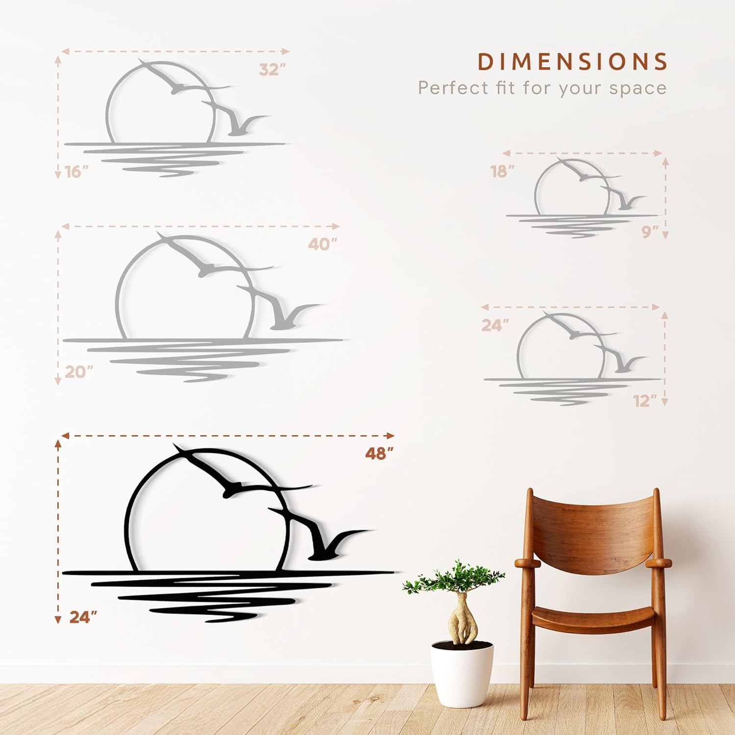 Wita Home Sunset with Seagulls Metal Wall Mounted Art, Handcrafted Metal Home Decor with Static Powder Coating, Eye-Catching Addition to Living Room Decor, Modern Beach Decor for Indoor and Outdoor Spaces, Perfect Housewarming Gift (48 x 24 inches)