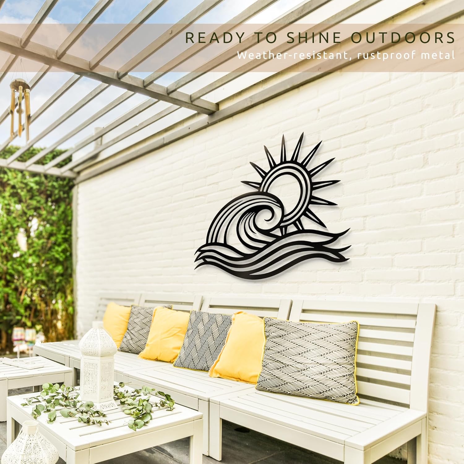 - STYLISH COASTAL DESIGN: Featuring an intricate ocean wave and sun motif, this coastal wall sculpture adds a touch of nautical elegance to any space. Its sleek, modern design complements various decor styles, making it a versatile addition to your home or garden.