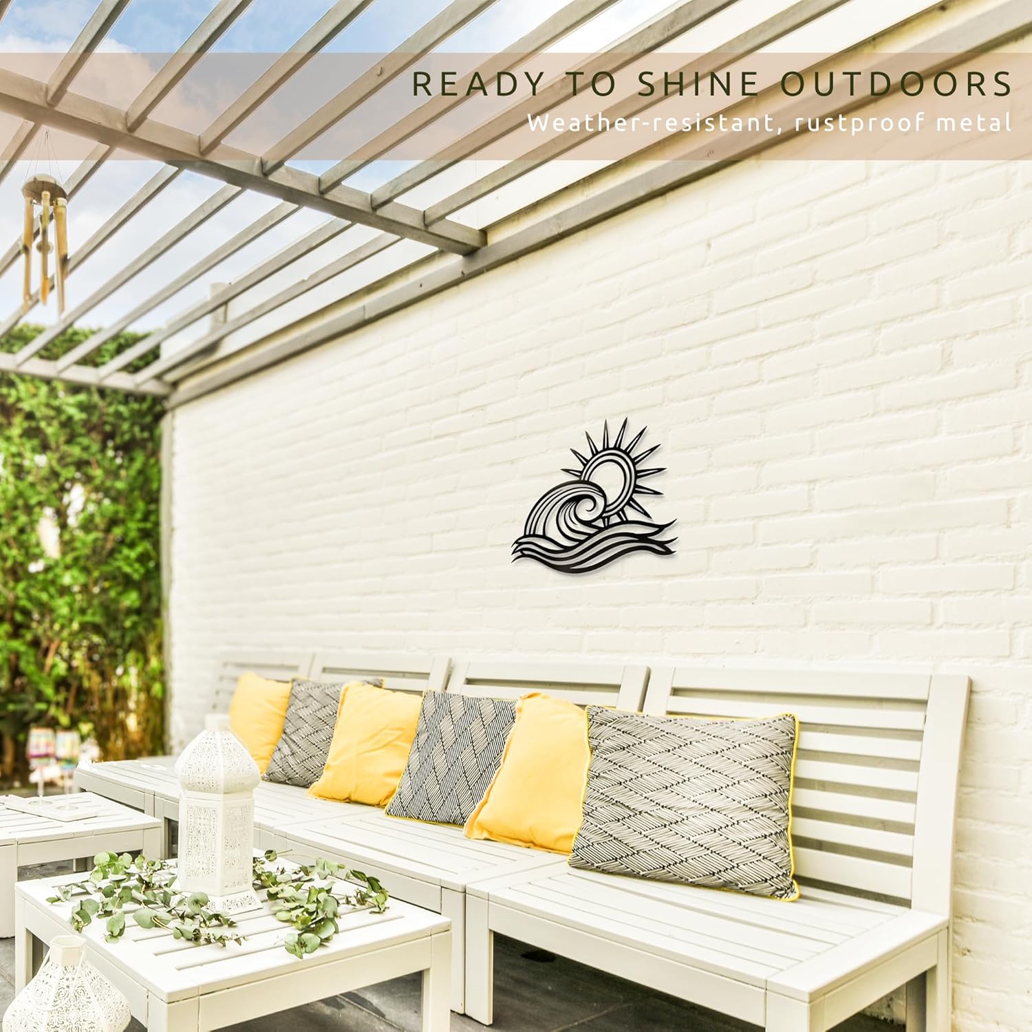 Wita Home Ocean Wave Metal Wall Art, Sun Beach Decor, Coastal Large Wall Sculpture for Home, Indoor/Outdoor Use, Nautical Wall Hanging, Eye-Catching Addition to Living Room (Black, 18 x 11 inches)
