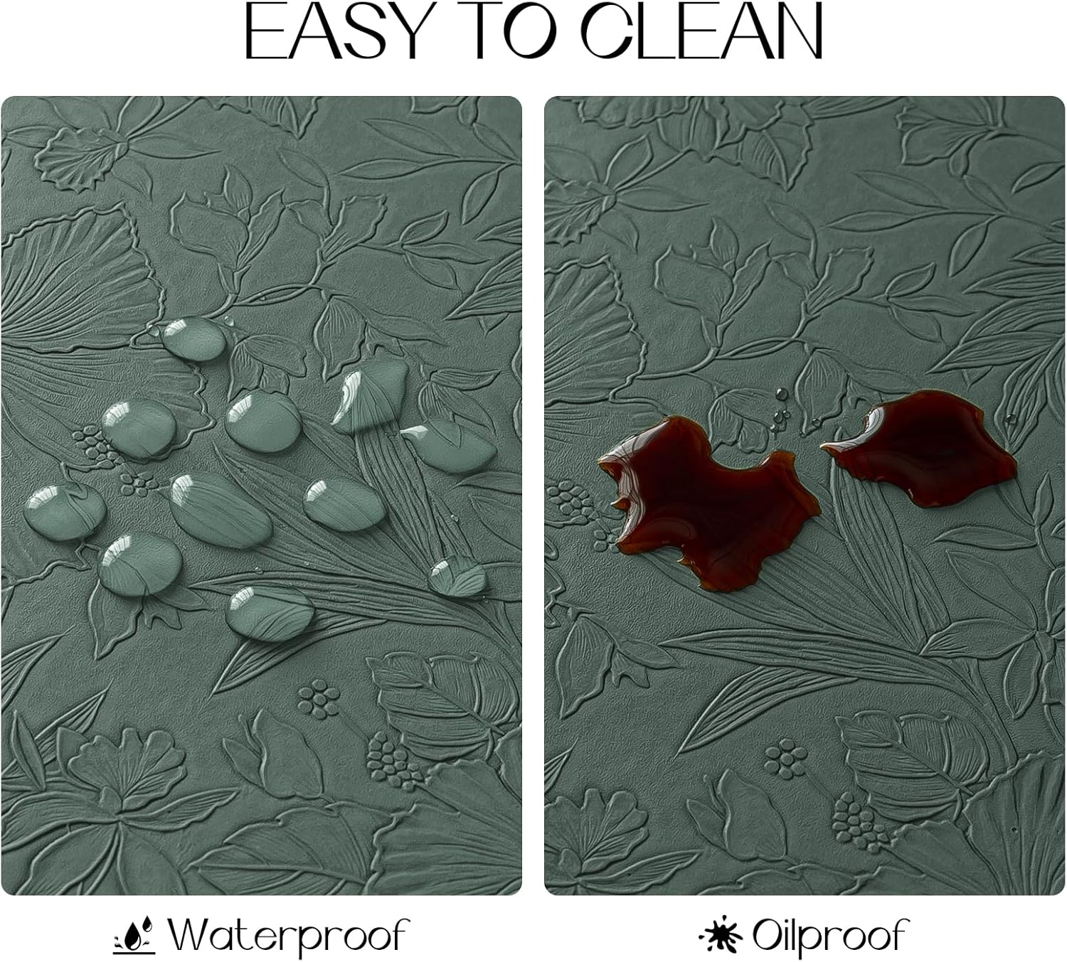 Romanstile Vinyl Placemats Set of 4-12 X 18 Inch - Heat Resistant Non-Slip Embossed Floral Place Mats 100% Waterproof Oilproof Wipeable Faux Leather Table Mats for Kitchen/Dining/Party, Green
