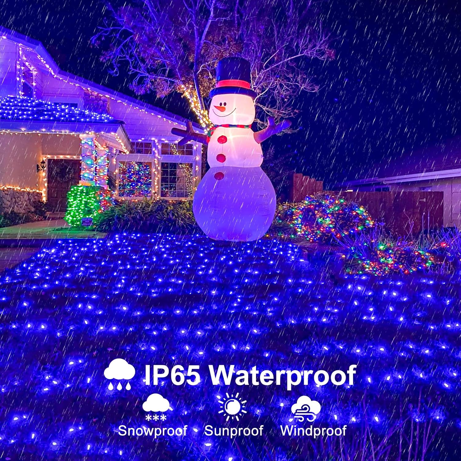 Christmas Lights Outdoor, 66FT 200 LED Christmas String Lights with 8 Modes Waterproof, Connectable Green Wire Twinkle Light for Tree Patio Garden Party Holiday Decorations, Blue