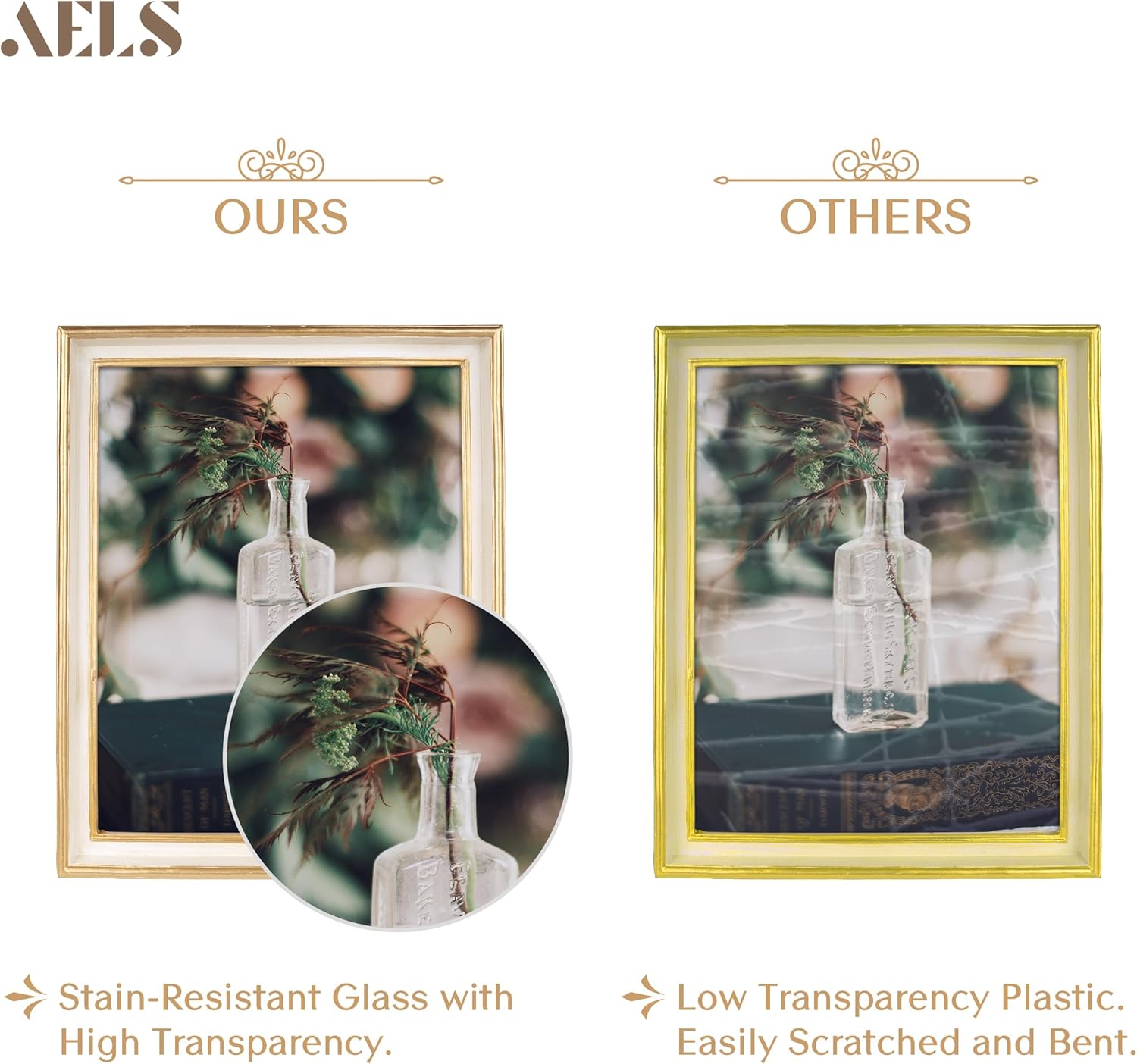 - [Elegant Decoration] It will be a perfect decorative photo frame for living room, bedroom, dining room, or bathroom. This picture frames will look great with any décor and perfectly fits any style of decoration, especially retro style.