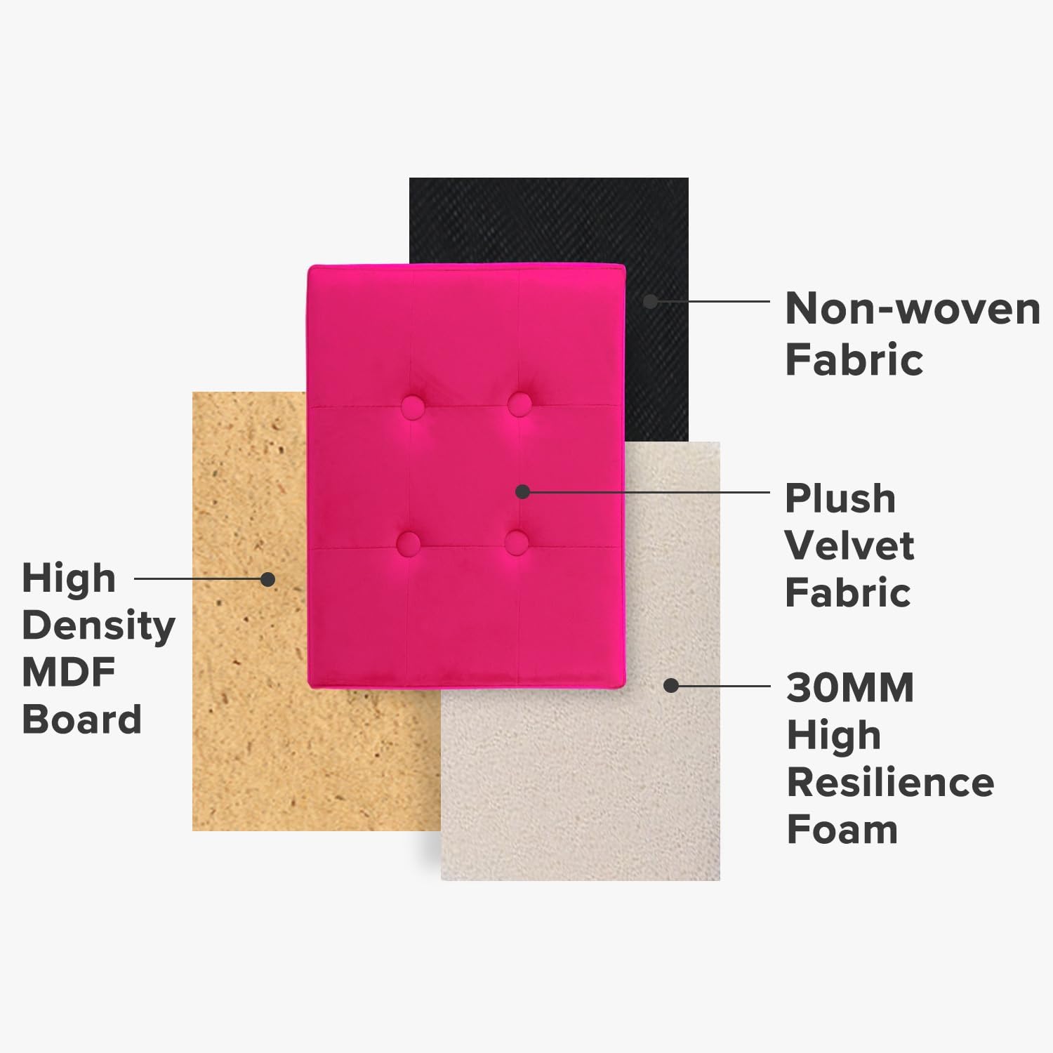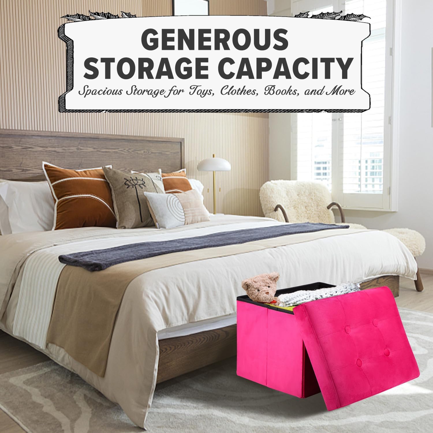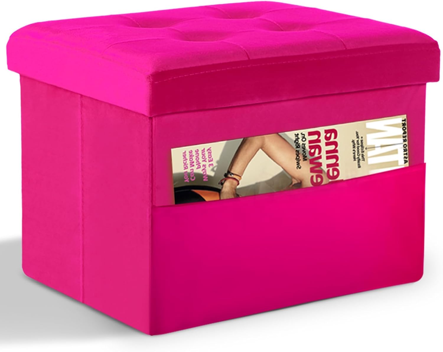 LINMAGCO Storage Ottoman Folding Foot Stool Foot Rest with Side Pocket Modern Ottoman with Storage Short Sofa Stool Velvet 17x13x13(ROSEO)