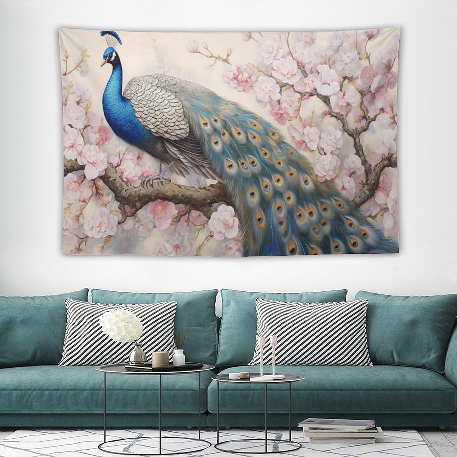 Peacock Tapestry Peacock Tapestries Fabric Wall Hanging Aesthetic Space Garden Indoor Outdoor Wall Art Tablecloth Bedspread Decoration for Bedroom Dormitory Living Room Home Decor 60"x90"