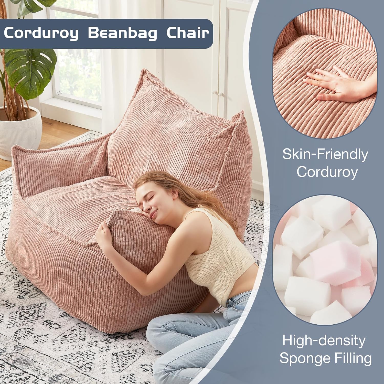 - 【MULTIPLE USAGE】: Corduroy bean bag sofa chair will blend into any home decor styles, and suitable for various rooms, perfect for bedroom, living room, game room, study room, office or apartment. Providing comfort and support while reading, playing, gaming, sleeping, watching TV, etc.