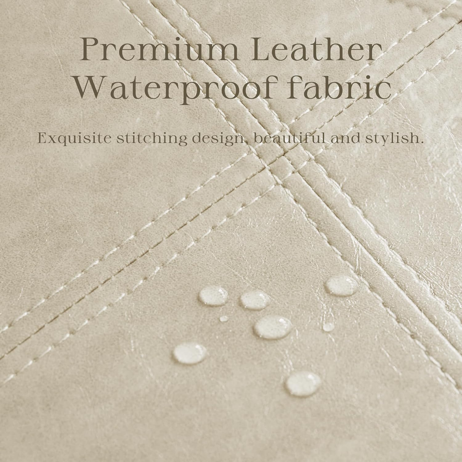 HUIMO Square Storage Ottoman, Tufted Leather Ottoman for Living Room (Khaki)