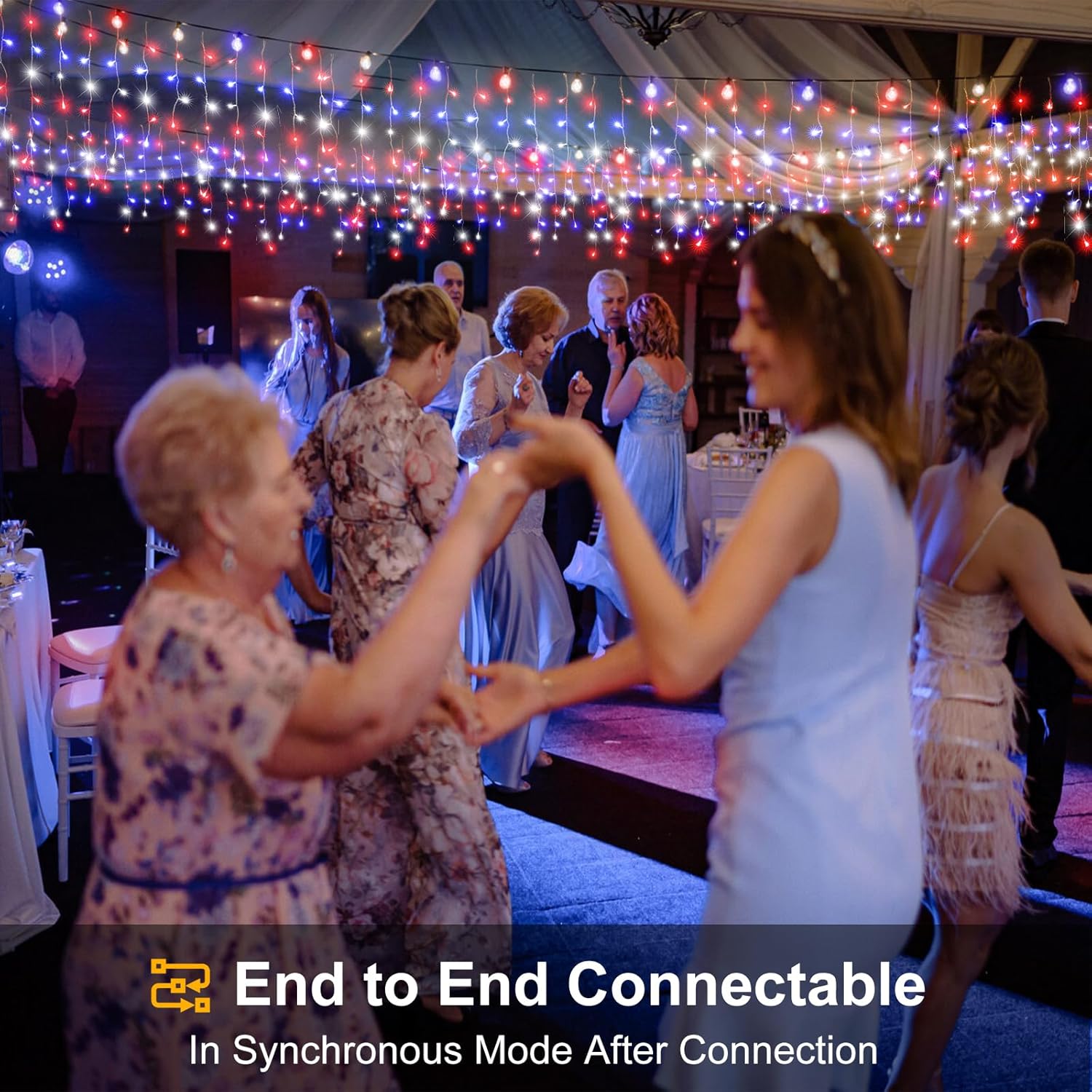 - ăConnectable & WaterproofăEach icicle lights for outside comes with end-to-end connector, maximum of 3 strings can be connected.This 4th of July lights are waterproof for outdoor use, so don't worry about it getting wet in rain or snow. Just protect the plug from the water. These icicle lights outdoor are your best choice for outdoor indoor 4th of July decorations.