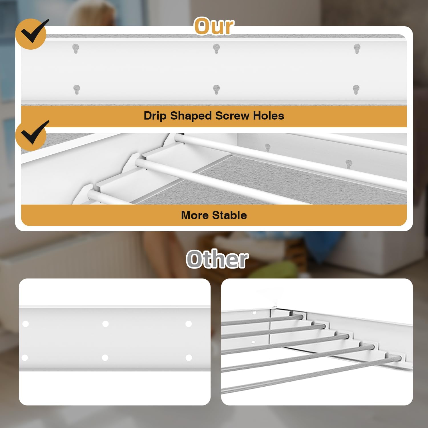 Laundry Drying Rack, Collapsible Wall Mounted Clothes Drying Rack - Drying Rack Clothing Foldable,Space Saving, 31.5" Wide, 13.2 Linear Ft, 5 Aluminum Rods, 60 lb Capacity (White, 31.5")