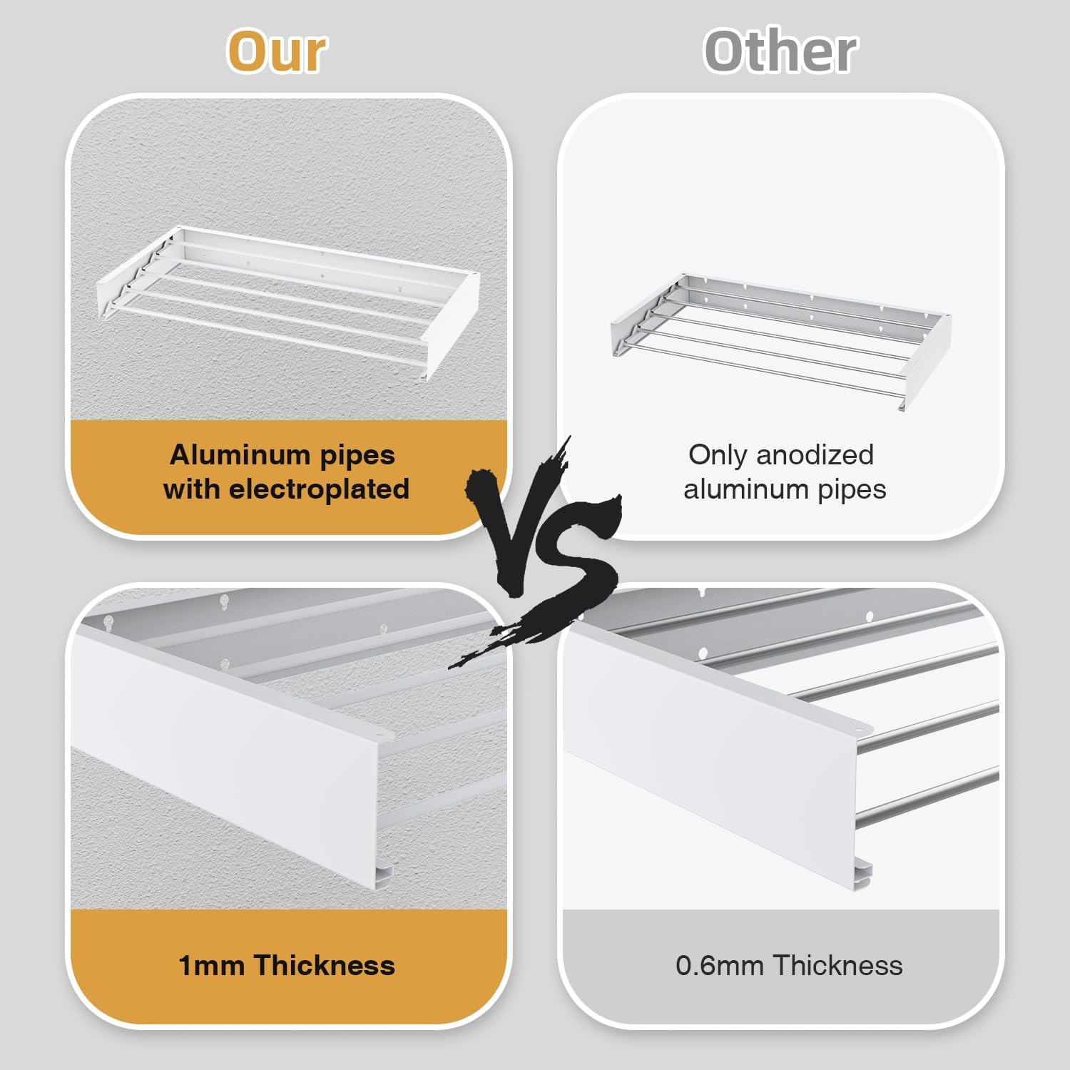 - Heavy Duty & Sturdy: 5 drying rods of the collapsible clothes drying rack are made from premium stainless steel, noticeably thicker and more robust than the standard silver pipes seen in the market, without risk of bending or deformation. 60lbs Capacity. This clothes dryer rack takes up little room, but when open you can fit so much! Compact yet functional.