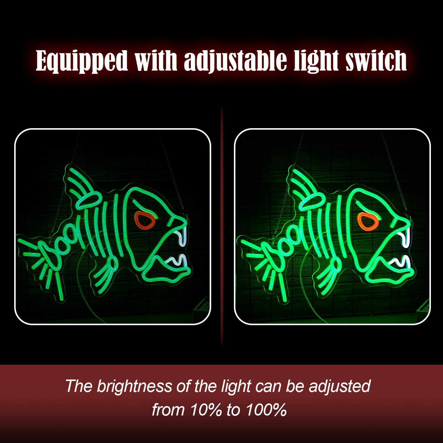 Fish Neon Sign LED Skeleton Fish Neon Light for Wall Decor Dimmable Green Fish Bones Light Up Sign for Living Room Game Room Restaurant Man Cave Art Wall Decoration (16.7 ''*12.8 '')
