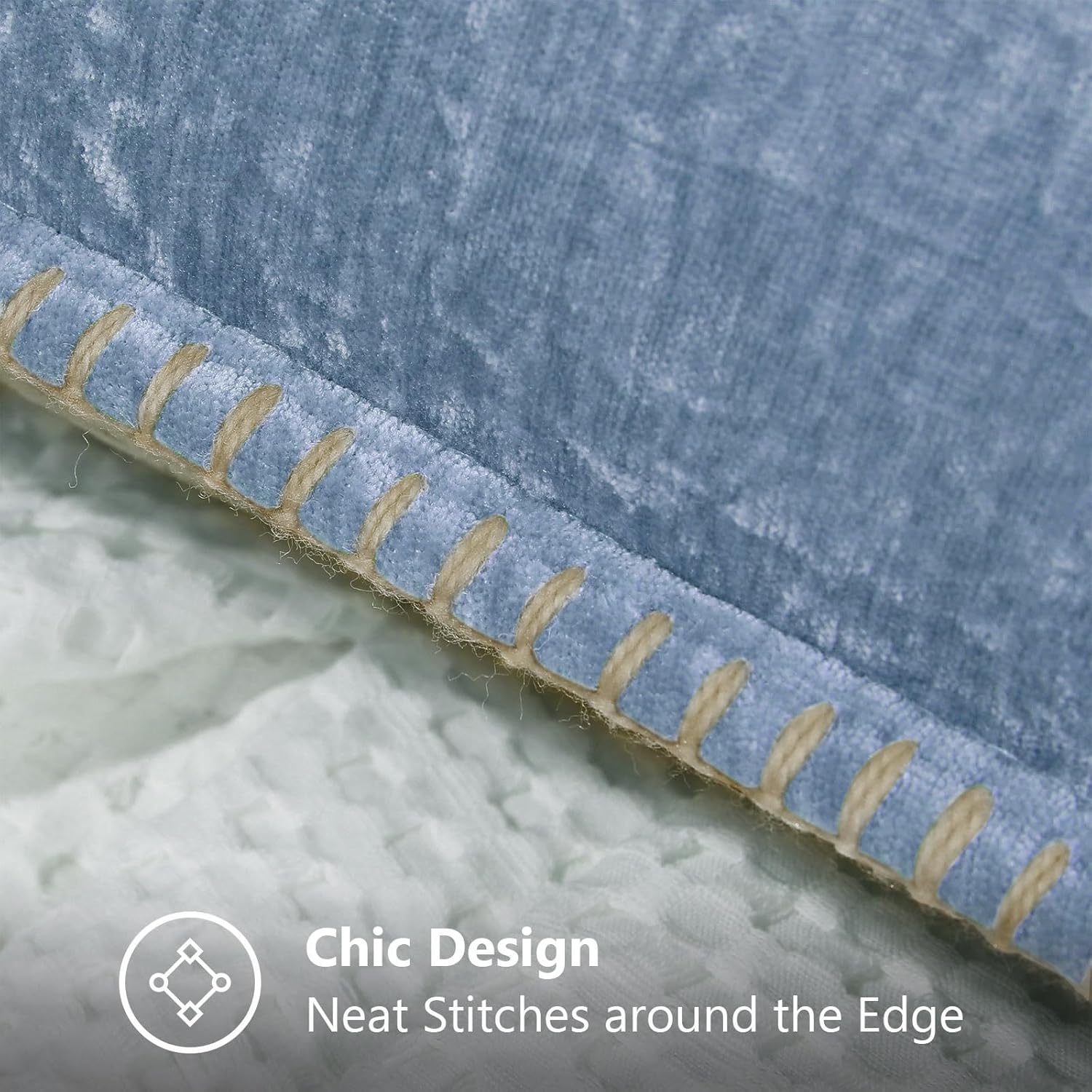 decorUhome Chenille Soft Throw Pillow Covers 24x24 Set of 2, Farmhouse Velvet Neutral Decorative Euro Pillow Covers with Stitched Edge for Couch Sofa Bed Home Decor, Blue