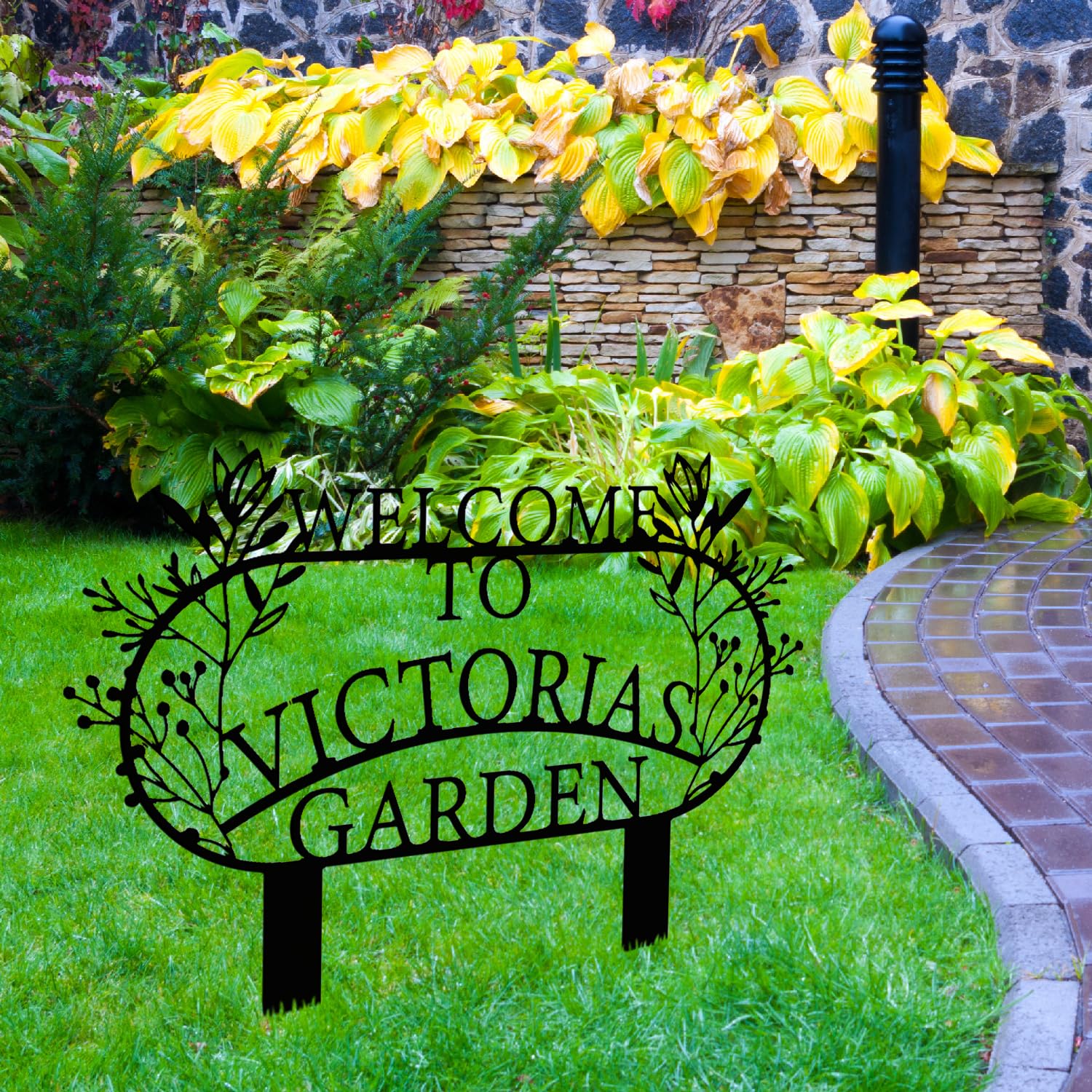 Personalized Metal Garden Sign with Stake, Custom Garden Decor for Outdoor, Custom Family Name Sign, Patio Decorations, Lawn Art, Farmhouse Decorative, Housewarming Gift (CstmDesign3)