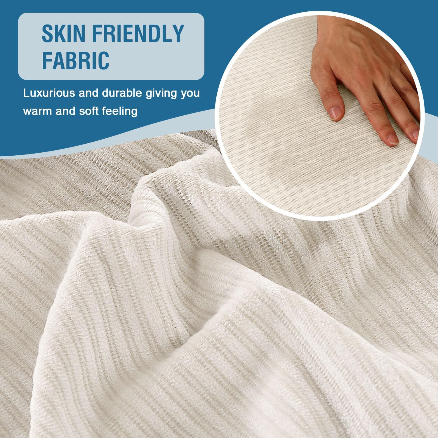 - INCREDIBLY COMFORTABLE VELVET: Products passed GLOBAL RECYCLED STANDARD certificate. 3 pieces included. Crafted from luxurious velvet plush fabric with unique striped cuts, feature thick, soft, smooth, anti-wrinkle, no fading, durable as well as highly stretch. Protect your cushion furniture from daily wears and tears, stains, kids, scratches from pet claws, dogs or accidental spills