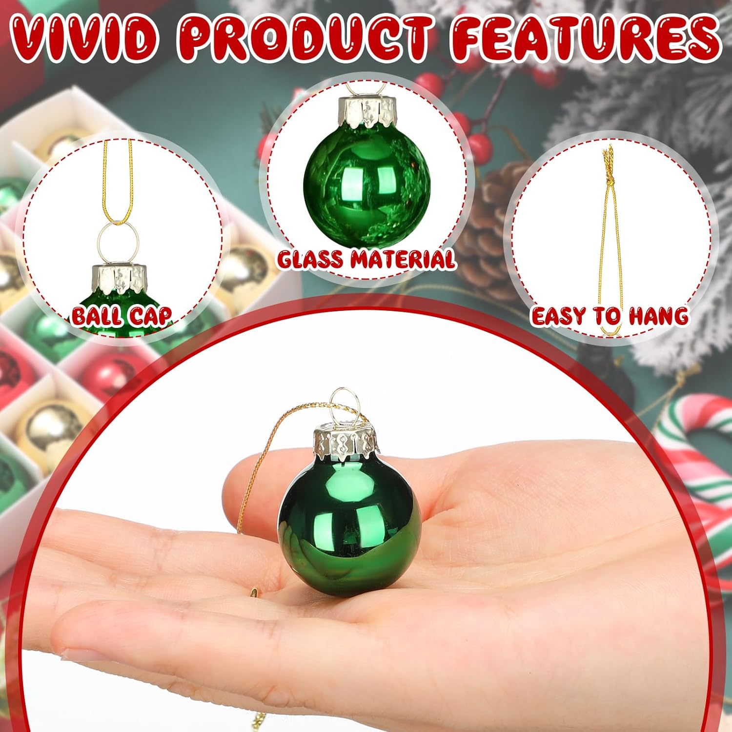 - Effortless Installation: with interesting features like a lanyard, setting up these 1 inch mini glass Christmas ornaments balls is easy, and the feature accelerates and simplifies the decoration process, allowing you more time to immerse yourself in holiday festivities