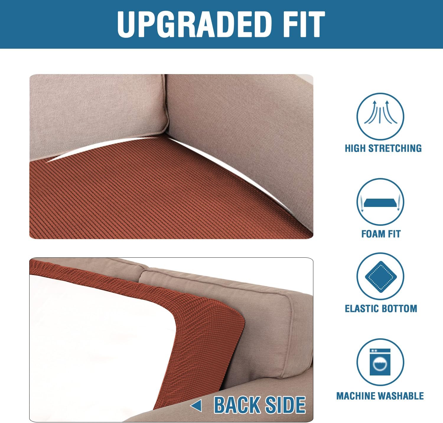 H.VERSAILTEX Super Stretch Individual Seat Cushion Covers Sofa Covers Couch Cushion Covers Slipcover Sets Thick Jacquard Textured Twill Fabric (1 Piece Sofa Cushion Cover, Rust)