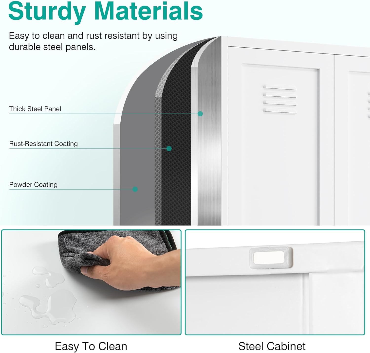 - Sturdy,Durable and Safe: Made of powder-coated steel plate,wide cabinet with door and shelf is sturdy,durable and easy to clean.Load capacity is up to 120lbs each shelf. The included anti-tip kit helps secure the pantry cabinets to the wall to give you a safer living space.