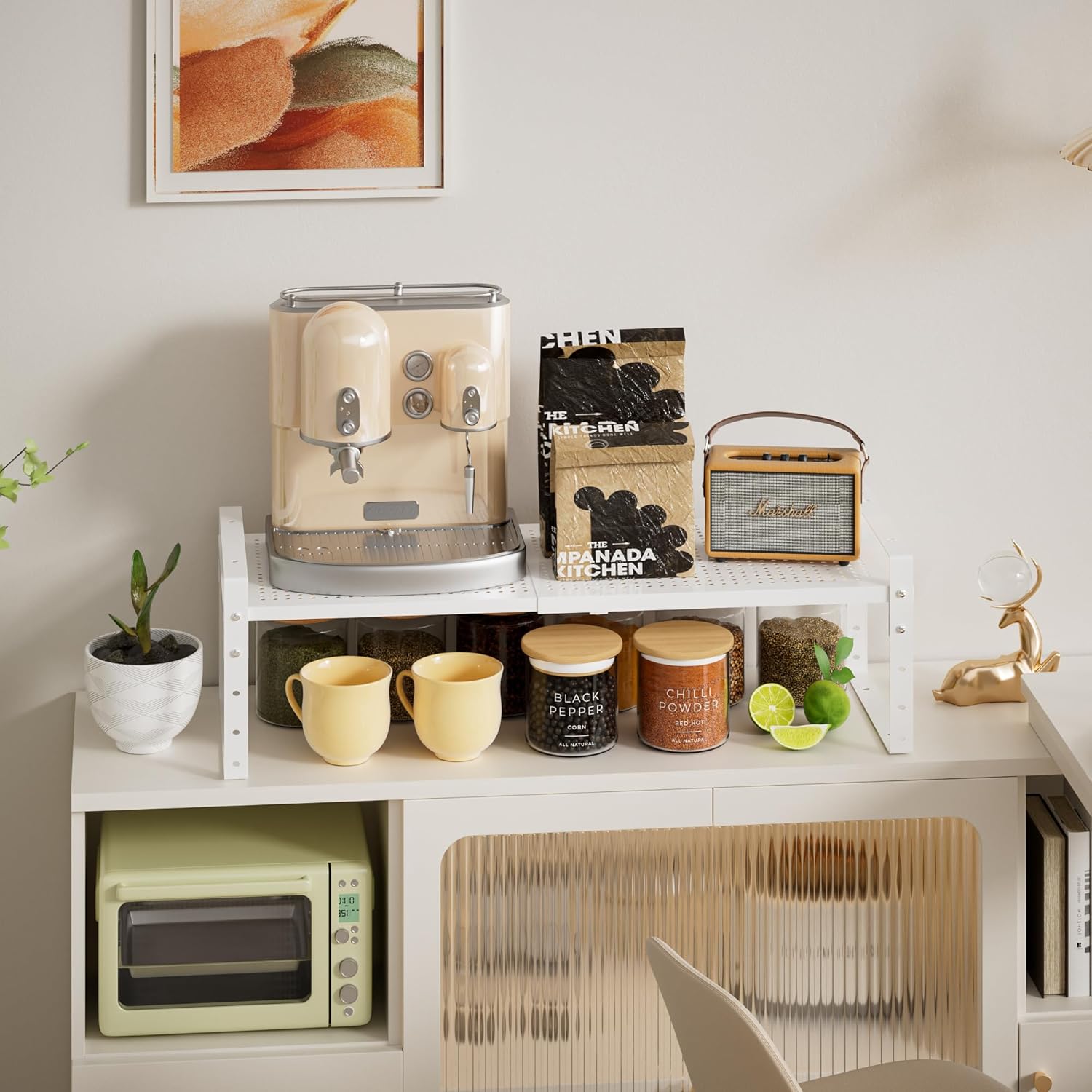 Expandable,Adjustable & Stackable Spice Rack, Cabinet Kitchen Countertop Shelf Organizer,Metal Pantry Storage Shelves - Space-Saving Storage Solution(1Pack/White/Medium)