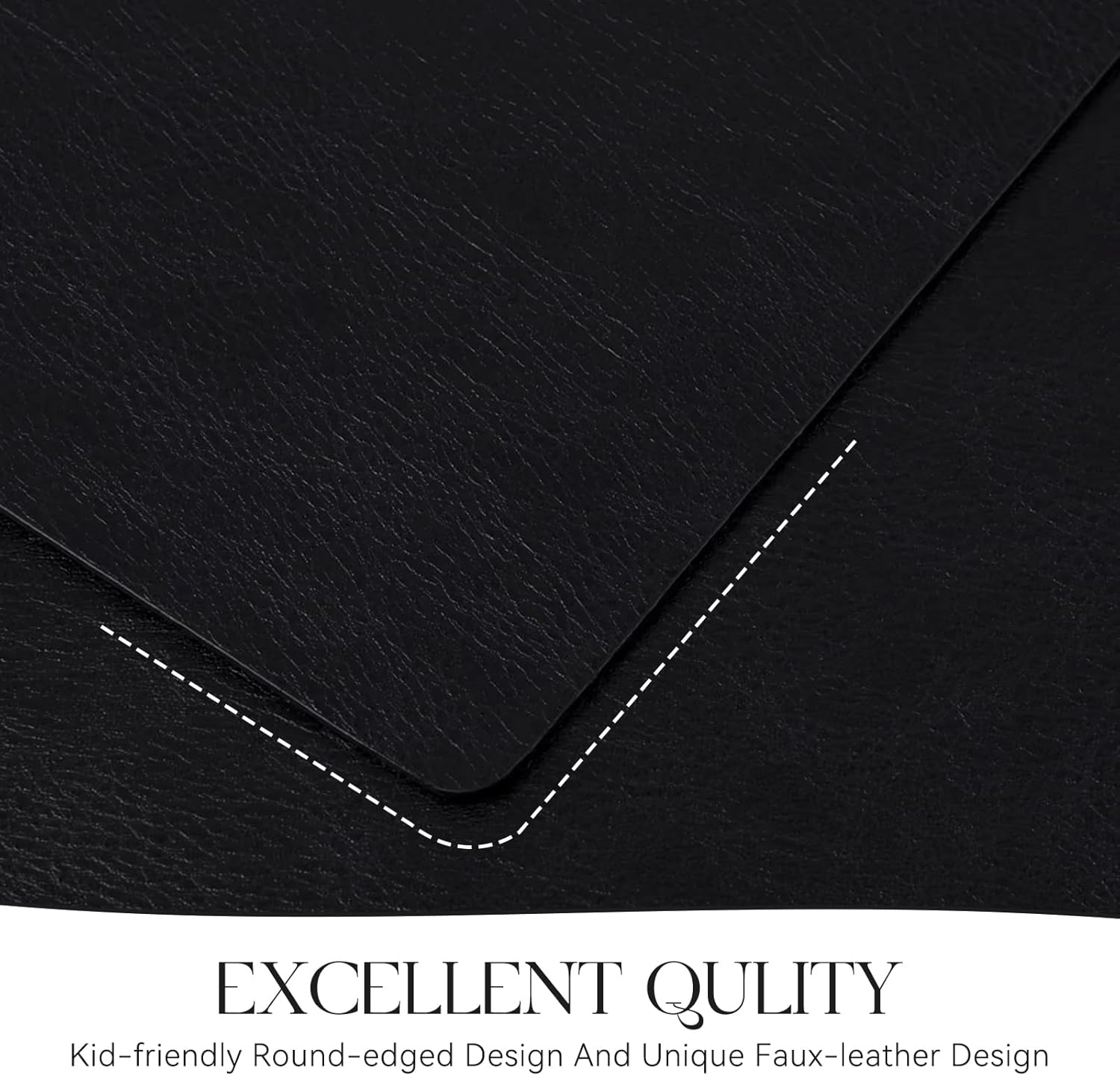 MOSAYT Vinyl Placemats Set of 8-12 X 17 Inch - Faux Leather 100% Waterproof Oil-Proof Wipeable PU Place Mats, Heat Resistant Reversible Table Mats for Kitchen, Dining, Outdoor (Black)
