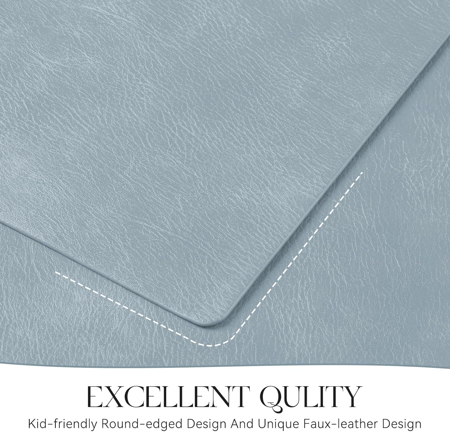 MOSAYT Vinyl Placemats Set of 6-12 X 17 Inch - Faux Leather 100% Waterproof Oil-Proof Wipeable PU Place Mats, Heat Resistant Reversible Table Mats for Kitchen, Dining, Outdoor (Light Grayish Blue)