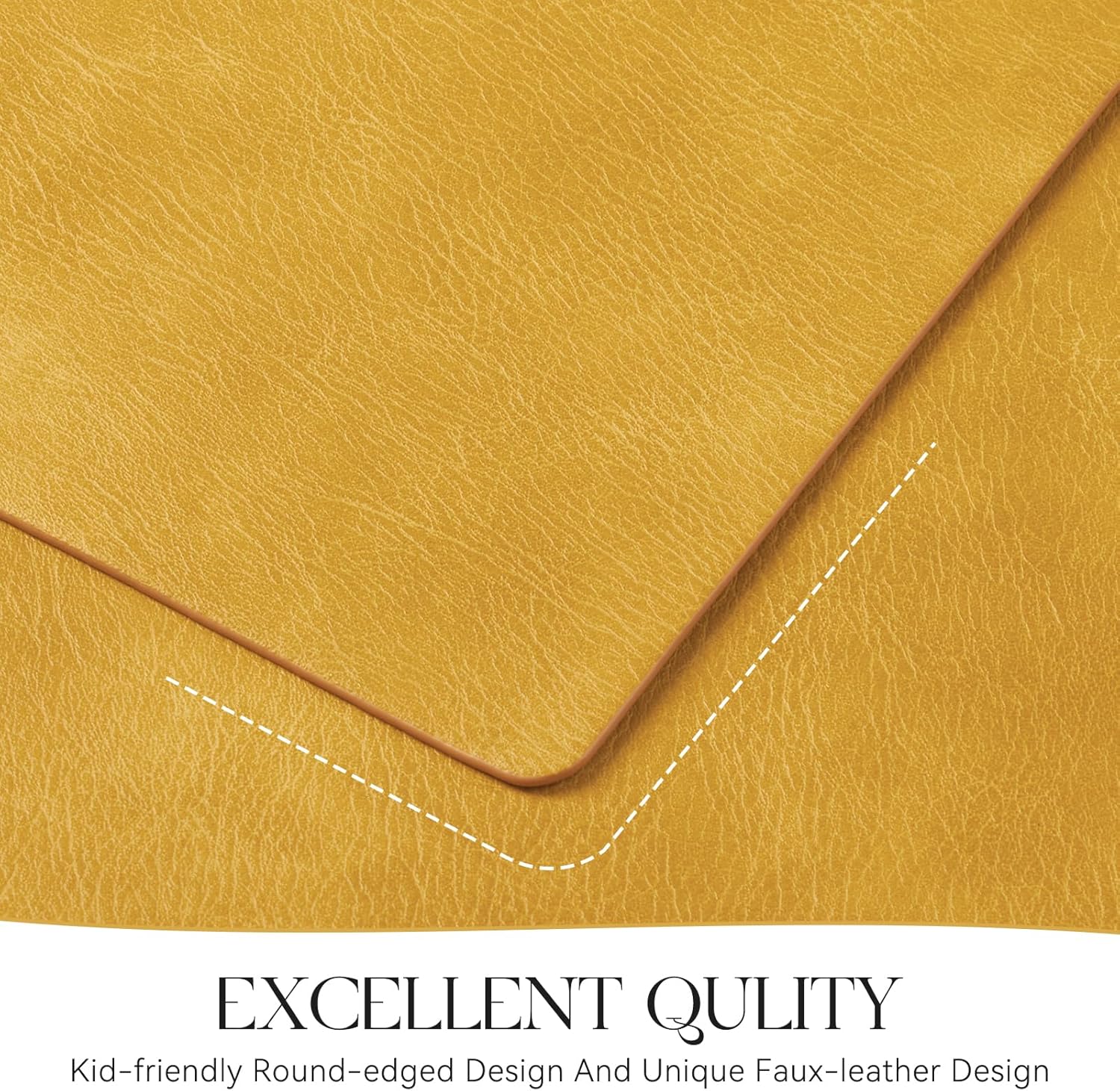 MOSAYT Vinyl Placemats Set of 4-12 X 17 Inch - Faux Leather 100% Waterproof Oil-Proof Wipeable PU Place Mats, Heat Resistant Reversible Table Mats for Kitchen, Dining, Outdoor (Yellow)