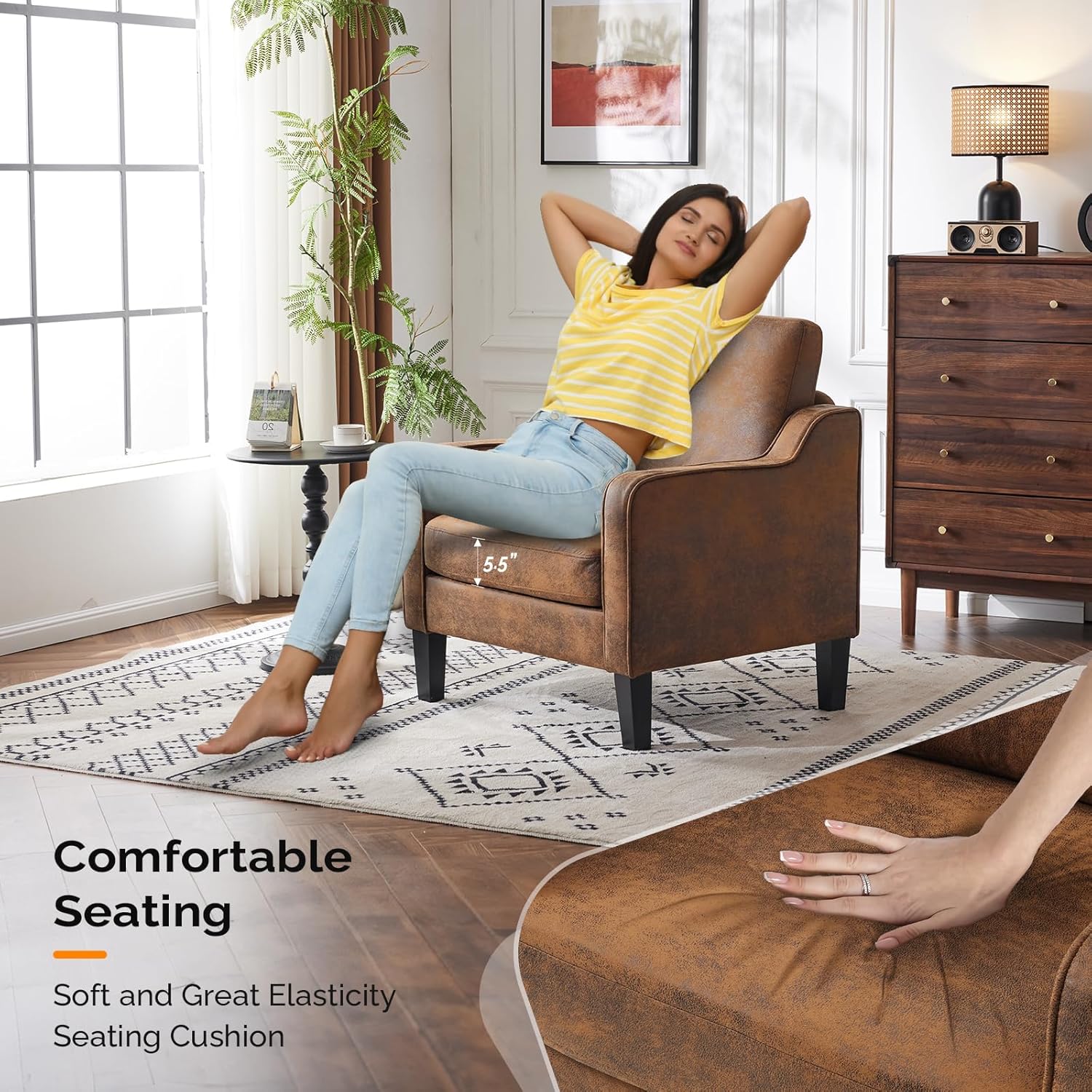 - Home Accent Essential--Our armchair features a minimalistic yet midcentury-style silhouette, making it a timeless piece that fits into most decor styles. Its comfort and style make it perfect for your living room, bedroom, apartment, upstairs loft, cozy nook, or office space.
